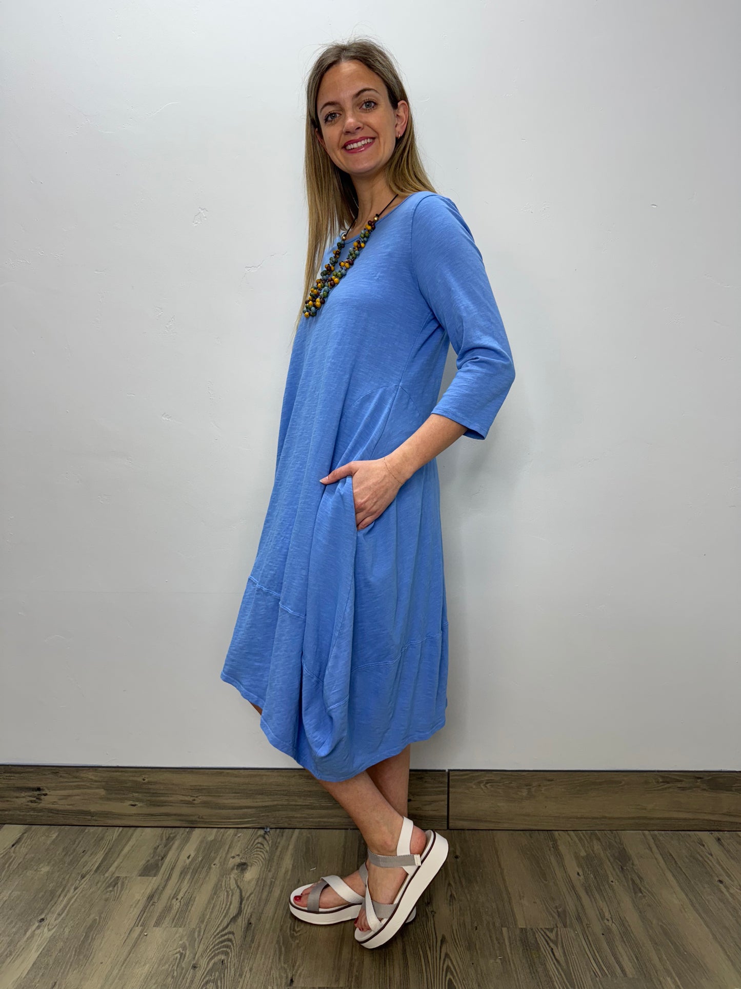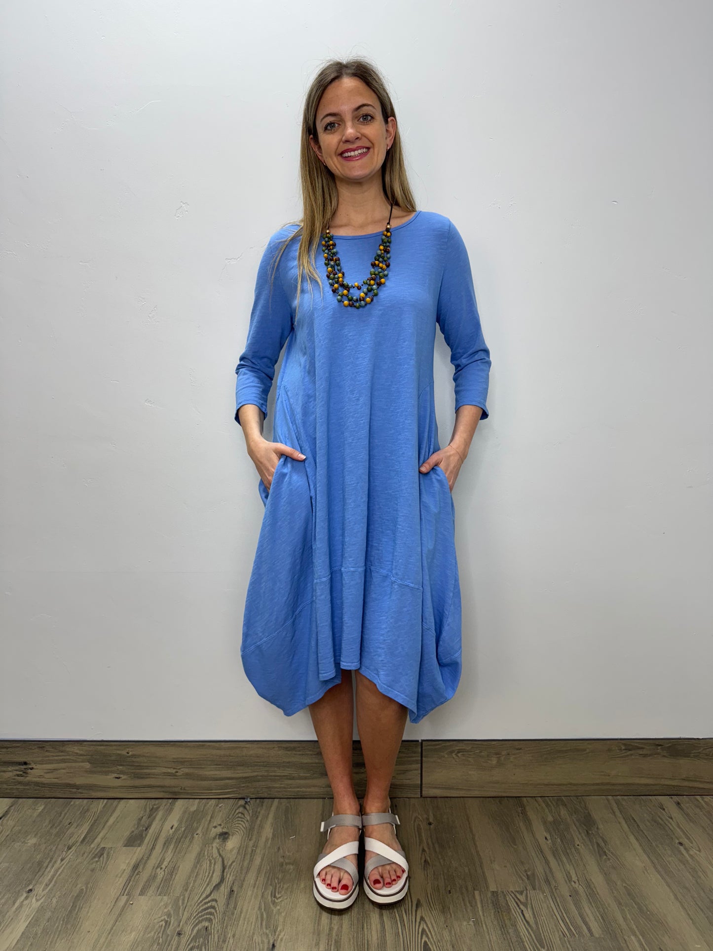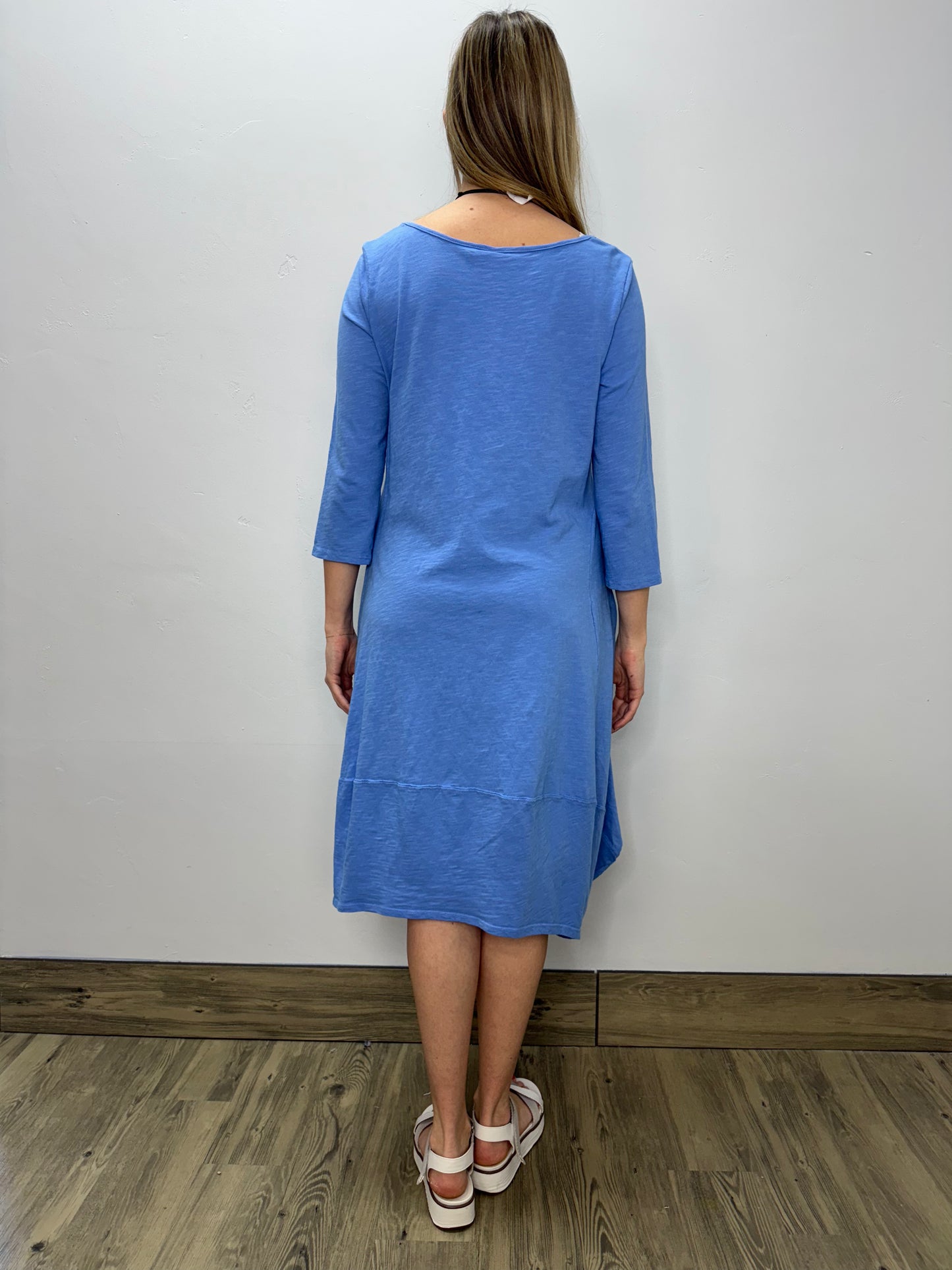 Experience ultimate comfort and style in our Cool Blue Cotton Tulip Dress! Crafted with a round neck, 3/4 sleeves, and a knee length cut, this dress boasts a timeless silhouette. But the best part? Two convenient pockets, perfect for all your essentials. Add a pop of color to your wardrobe today!