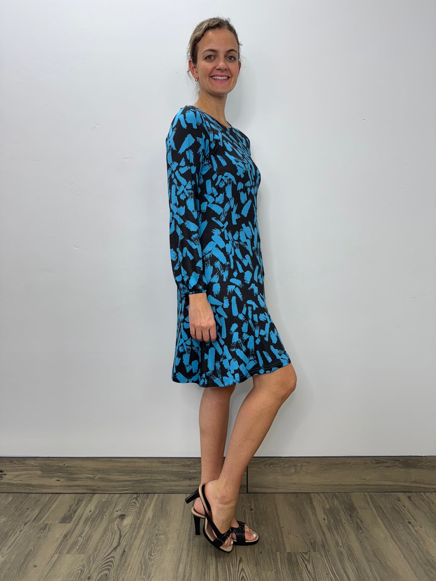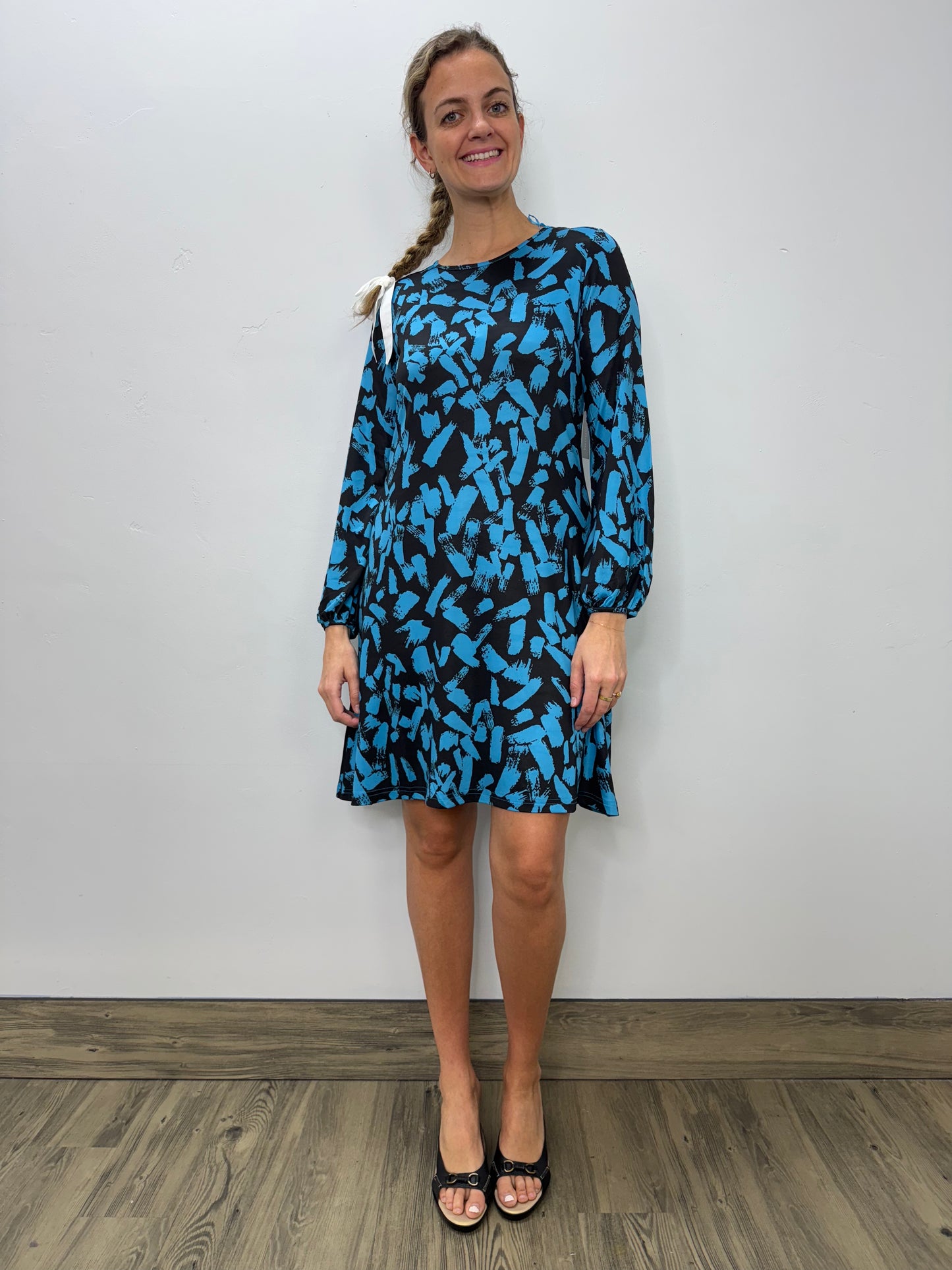 Introducing our Tango Mango Blue and Black Paint Long Sleeve Dress - the perfect combination of style and comfort! With its long sleeve sleeves, super soft fabric, and flattering a-line cut, this dress is a must-have for any fashion-forward individual. Elevate your look and feel amazing in our dress today!