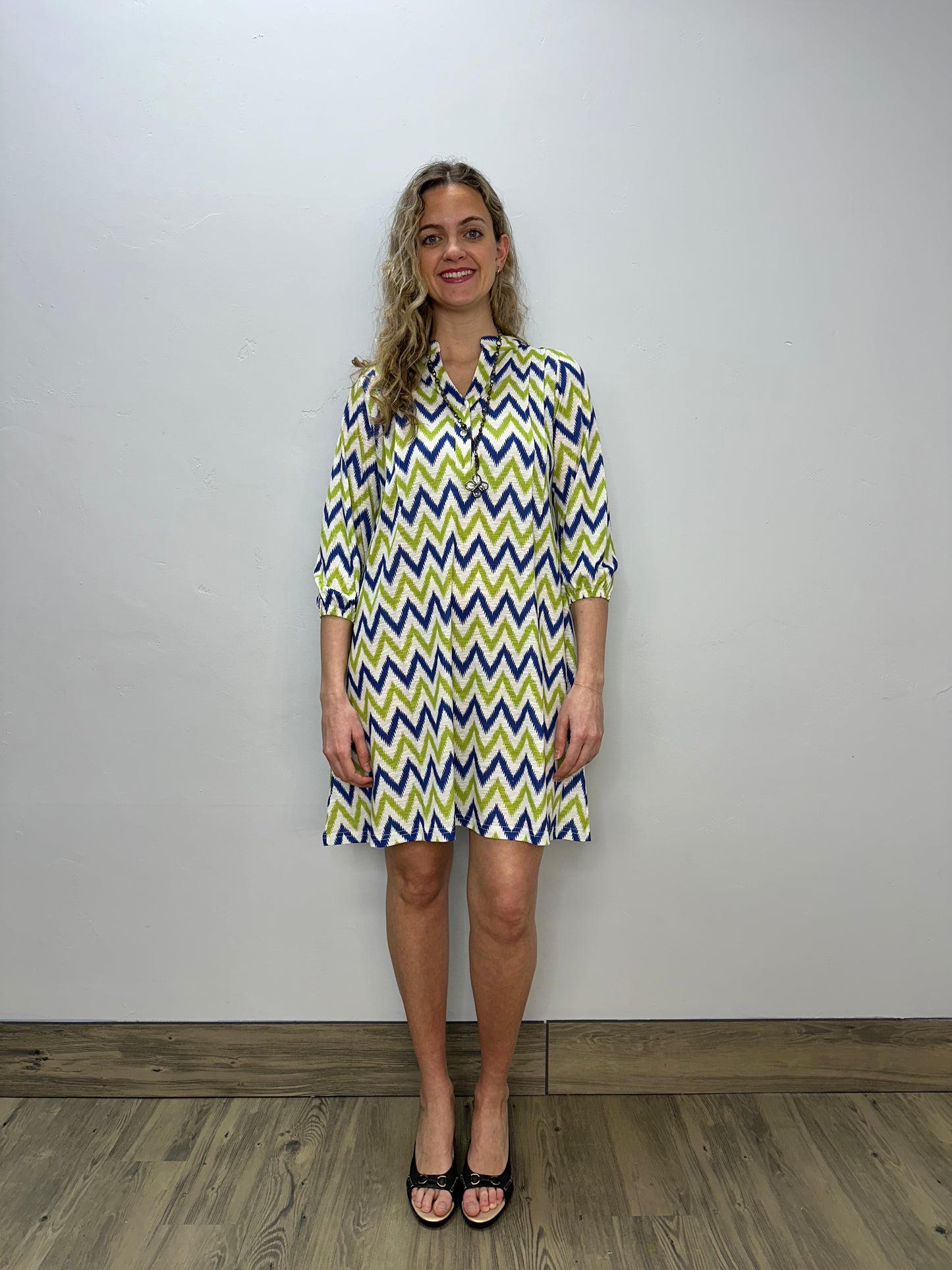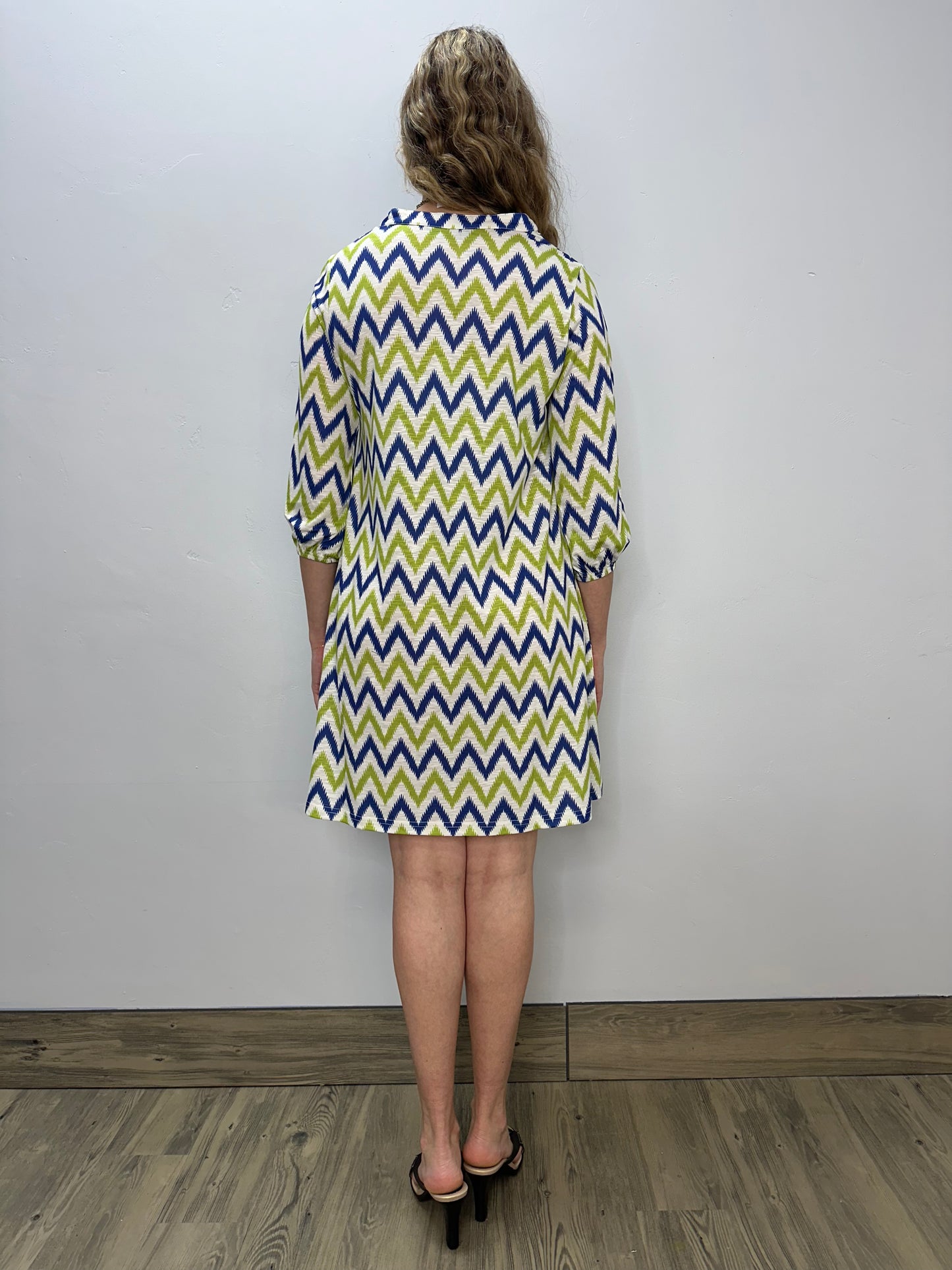 Experience a perfect blend of style and comfort with our Blue and Green Pattern V Neck 3/4 Sleeve Dress. The beautiful blue pattern and flattering v neck design will make you stand out, while the 3/4 sleeves and knee length keep you comfortable all day long. Upgrade your wardrobe with this must-have dress!