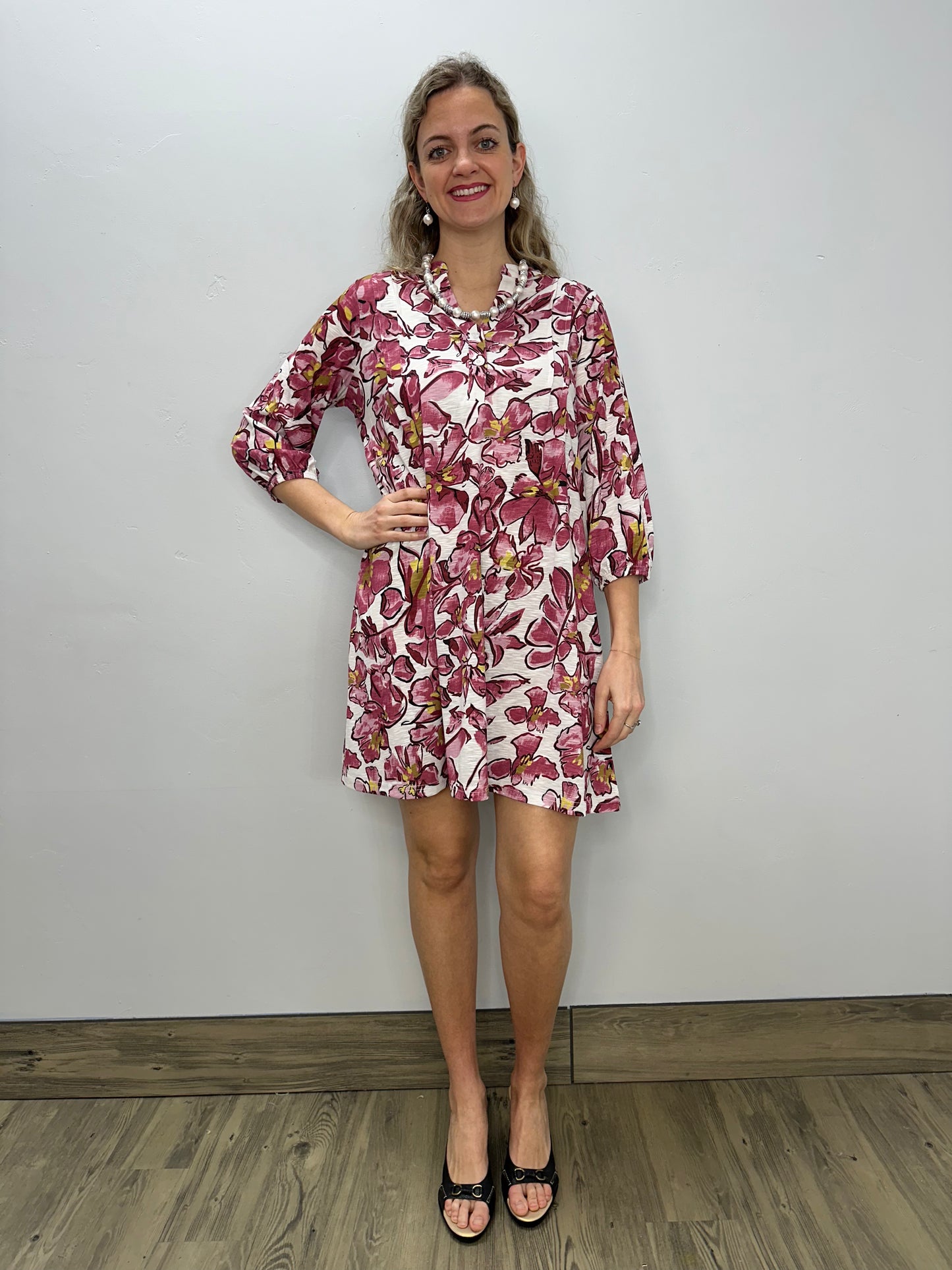 Embrace the vibrant energy of our Pink and Yellow Flowers V Neck 1/4 Button Down Dress! Made with soft, comfortable fabric and designed with a flattering neckline and 3/4 synched sleeves, this dress is perfect for any occasion. Add a touch of beauty to your wardrobe and feel confident and stylish wherever you go!
