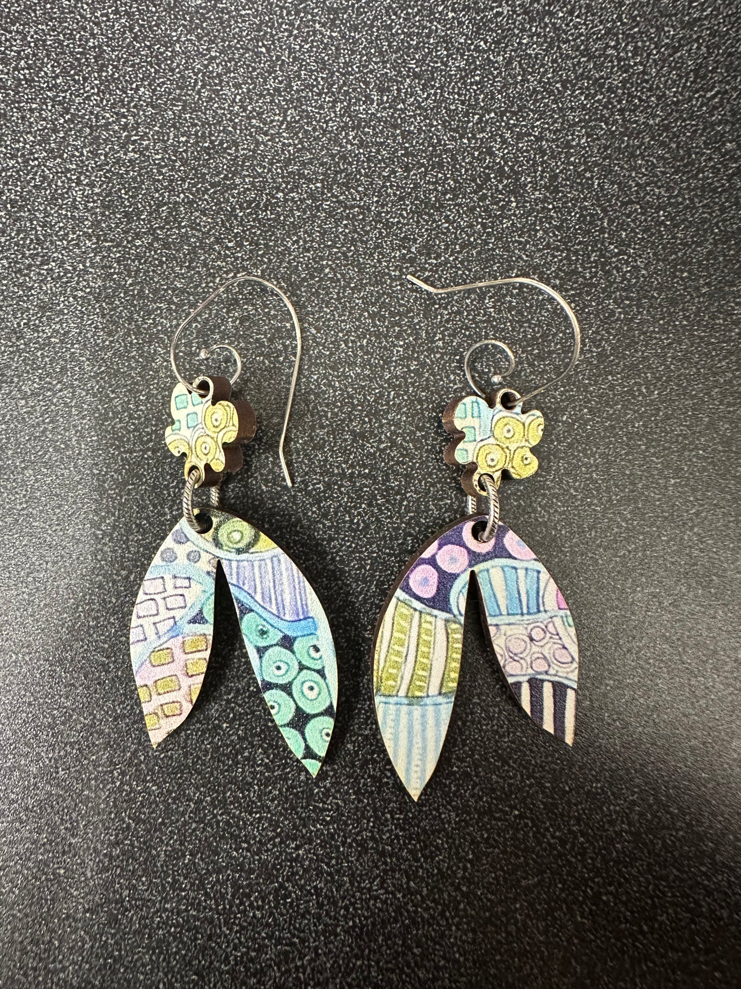 Purple Blue Pink Hand-Made Wooden Petal Earrings