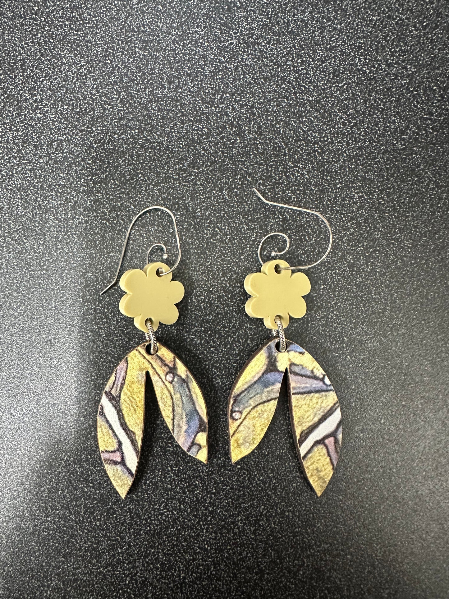 Add Purple Blue Pink Hand-Made Wooden Petal Earrings to the cart