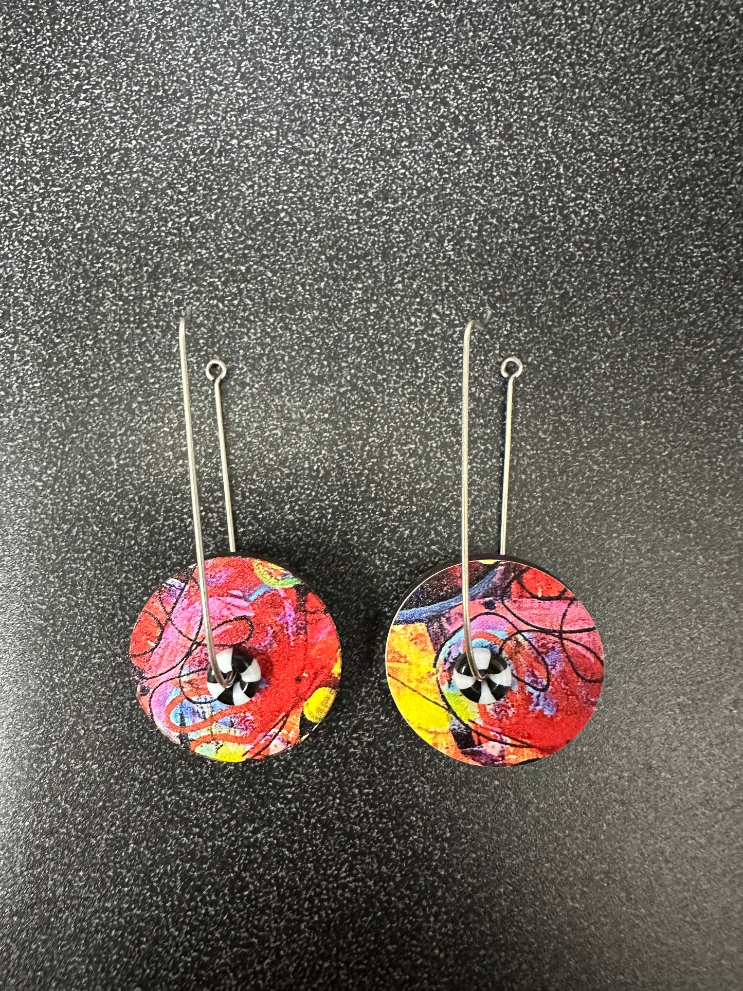 Add Red Pin Wheel Hand-Made Wooden Earrings to the cart