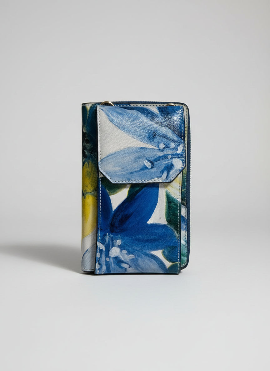 Teal Floral Shiny Leather Crossbody Wallet Bag