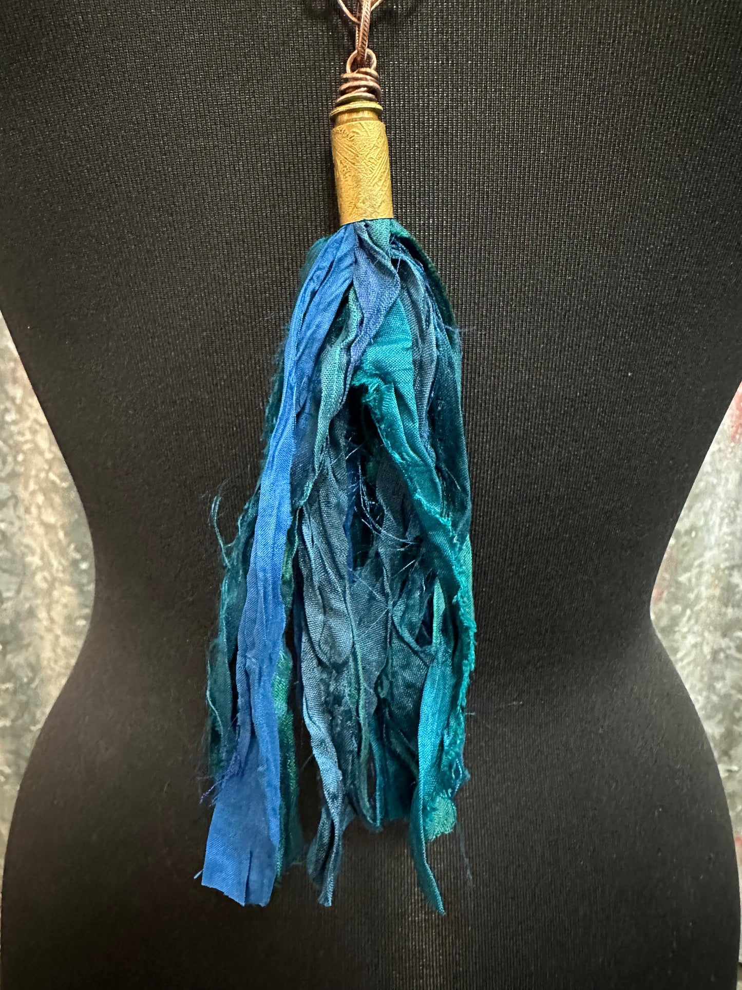 Deep Teal Silk Tassel Bullet Casing Necklace