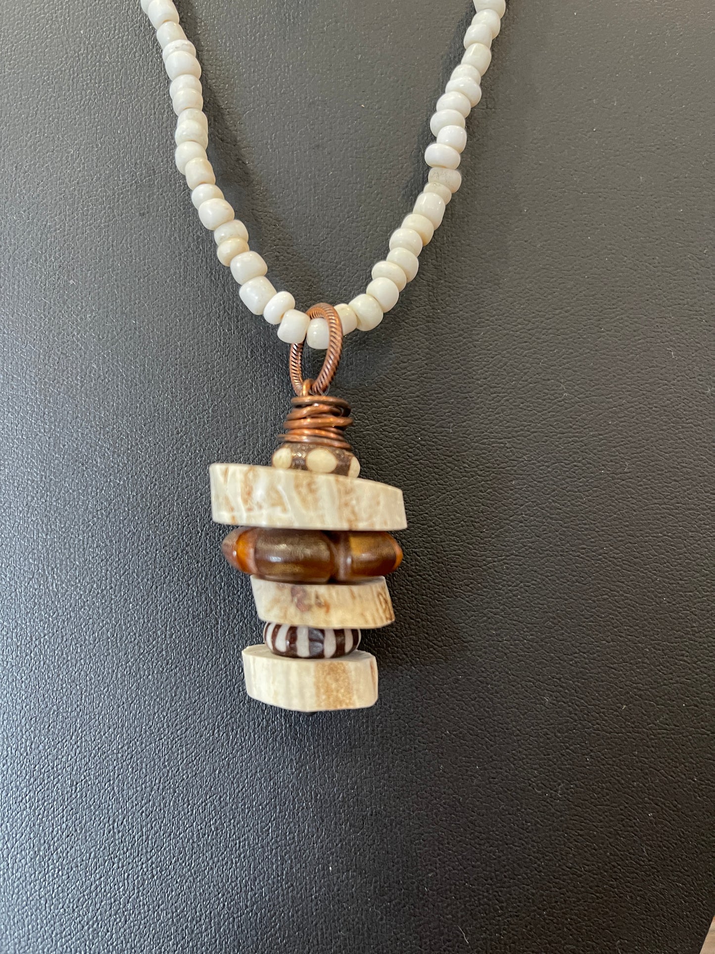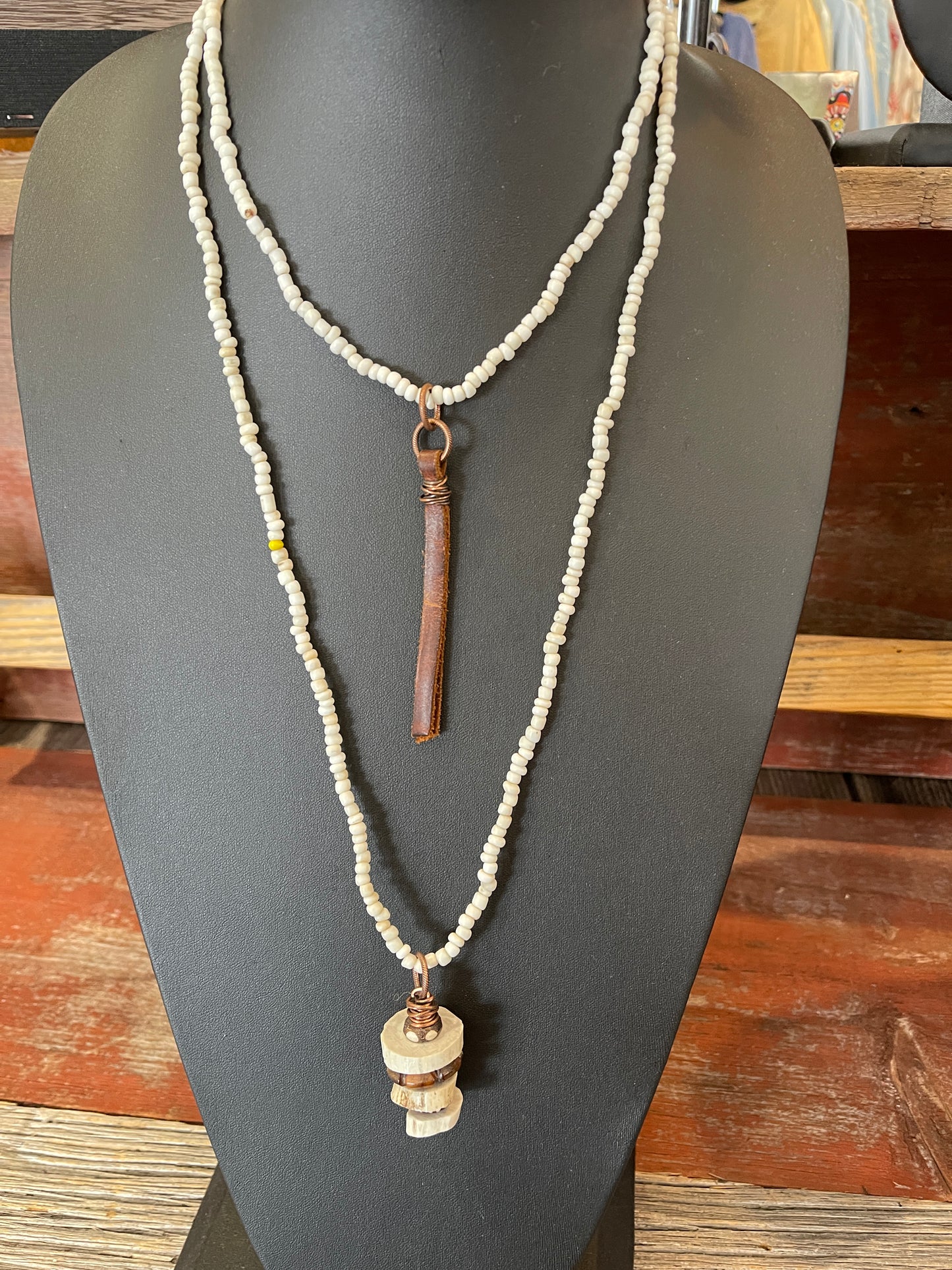 Indulge in true craftsmanship with our Glass Leather Antler Brown Hand Beaded Necklace. Each beautifully hand crafted piece features intricate glass beadwork and leather accents, adding a touch of elegance and charm to any outfit. Elevate your style with this stunning accessory!