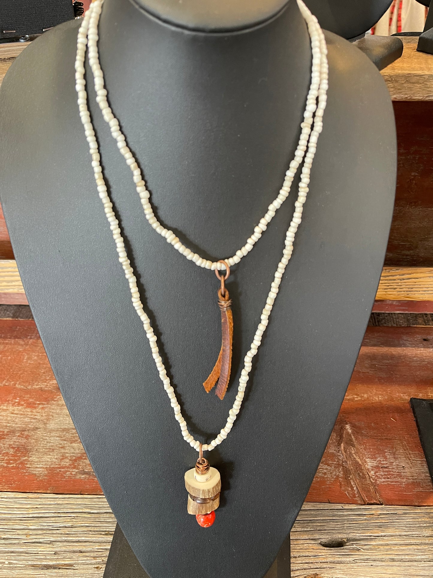 Indulge in true craftsmanship with our Glass Leather Antler Red Hand Beaded Necklace. Each beautifully hand crafted piece features intricate glass beadwork and leather accents, adding a touch of elegance and charm to any outfit. Elevate your style with this stunning accessory!