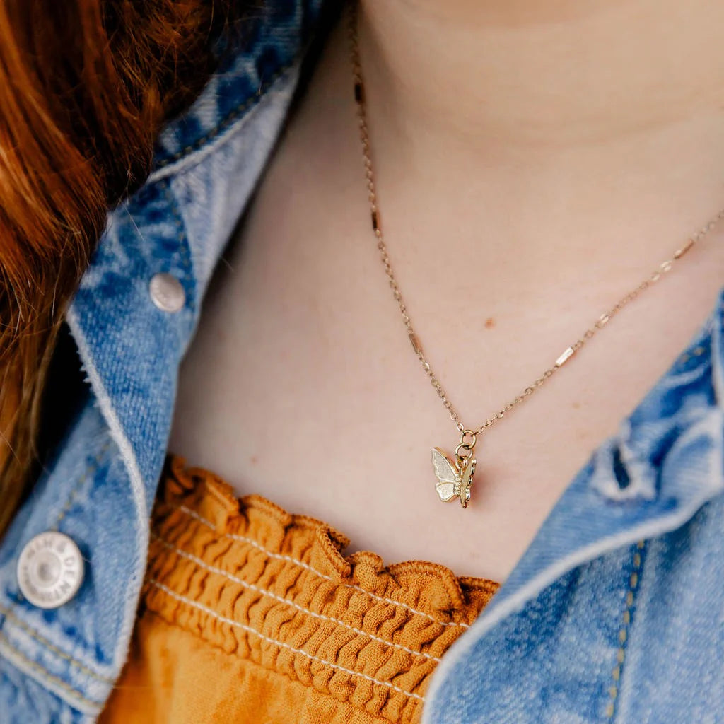 Butterflies are known for their mesmerizing beauty, strength, and hope. The Gold Butterfly is super dainty and the perfect minimalist necklace for any lover of butterflies. This necklace is also a lovely gift for anyone who has recently "transformed" into a new chapter in their life (graduation, accomplishment, new job, birthday). Pair this with the Gold Earrings for a charming set!