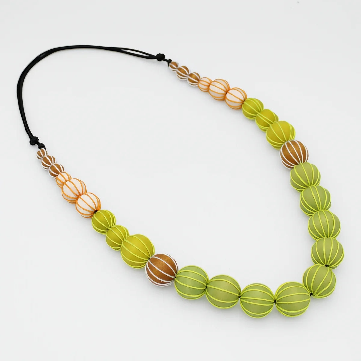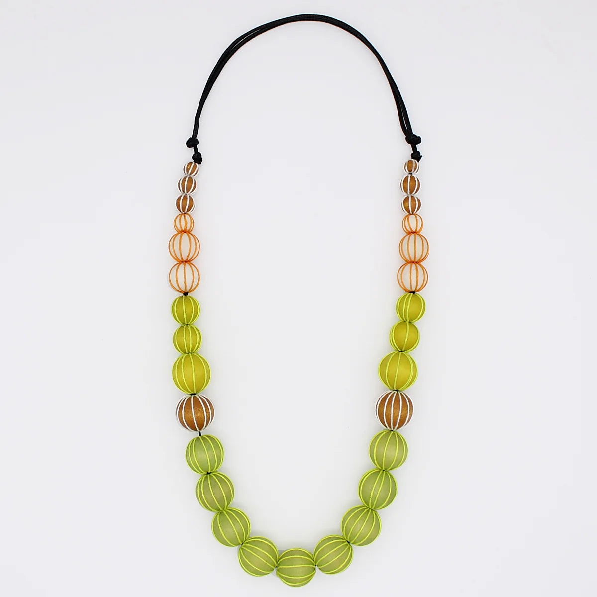 Lime Wooden Wrapped Bead Adjustable Necklace