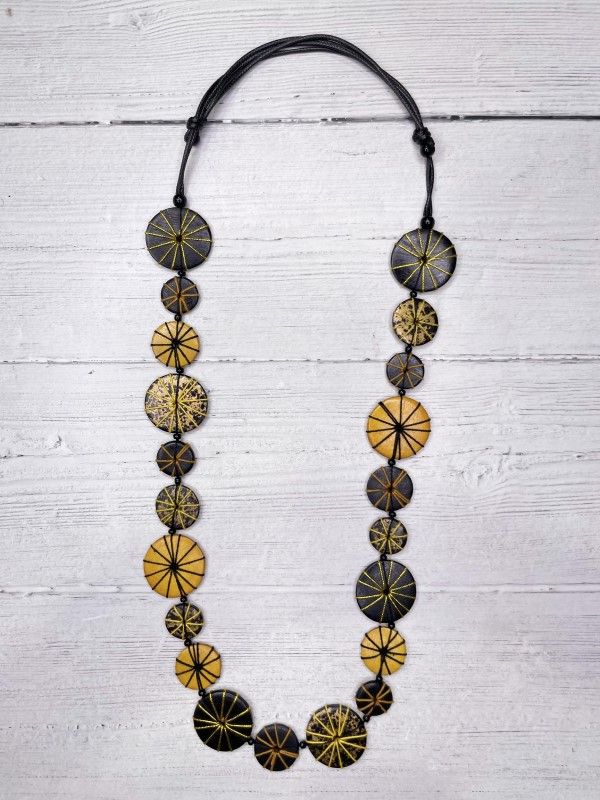 Add a touch of warmth and elegance with the Mustard Spiral Adjustable Necklace. Featuring a mustard and gold spiral design on a comfortable adjustable cord, this necklace effortlessly enhances any outfit. Its adjustable length ensures a perfect fit, making it a versatile accessory for day-to-night wear.