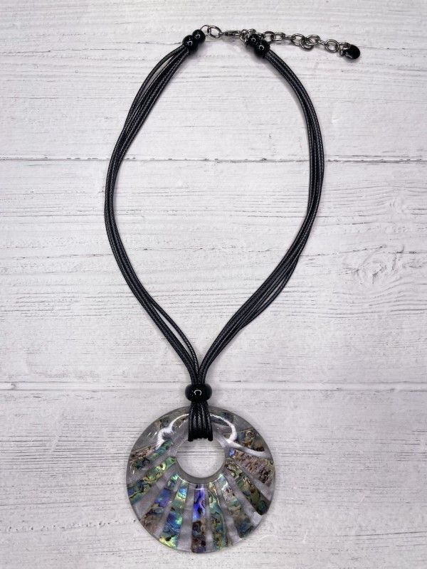 Elevate your style with the Natural Resin Circle Pendant Necklace. Featuring a gray circle pendant crafted from natural resin on a sleek black cord, this piece offers a blend of organic beauty and modern design. The lobster claw closure ensures secure, easy wear, making it a versatile accessory for any occasion.