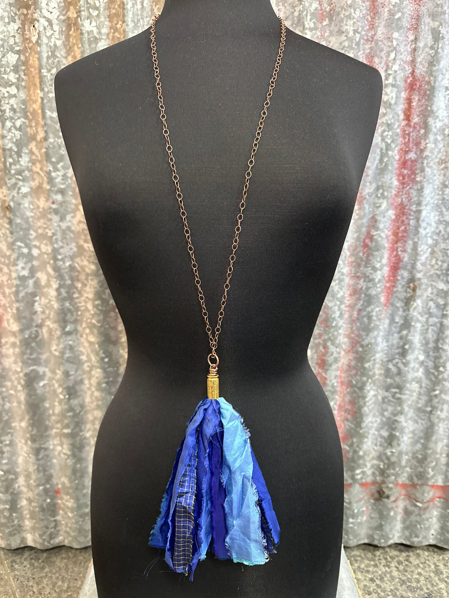 Patch Shades of Blue Silk Tassel Bullet Casing Necklace