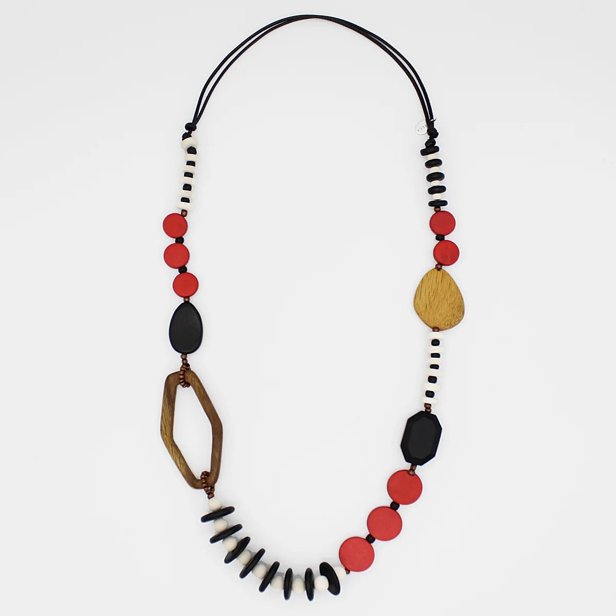 Discover a show-stopping accessory that will instantly elevate your look - our Red Wood Bead statement necklace. This lime necklace boasts a unique design, carefully handcrafted to capture attention from every angle. The combination of vibrant wood beads and the contrasting accents in rich brown and white create a striking and harmonious effect in a lightweight design.