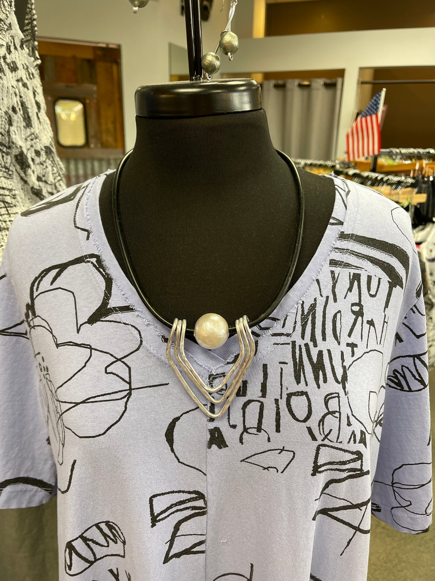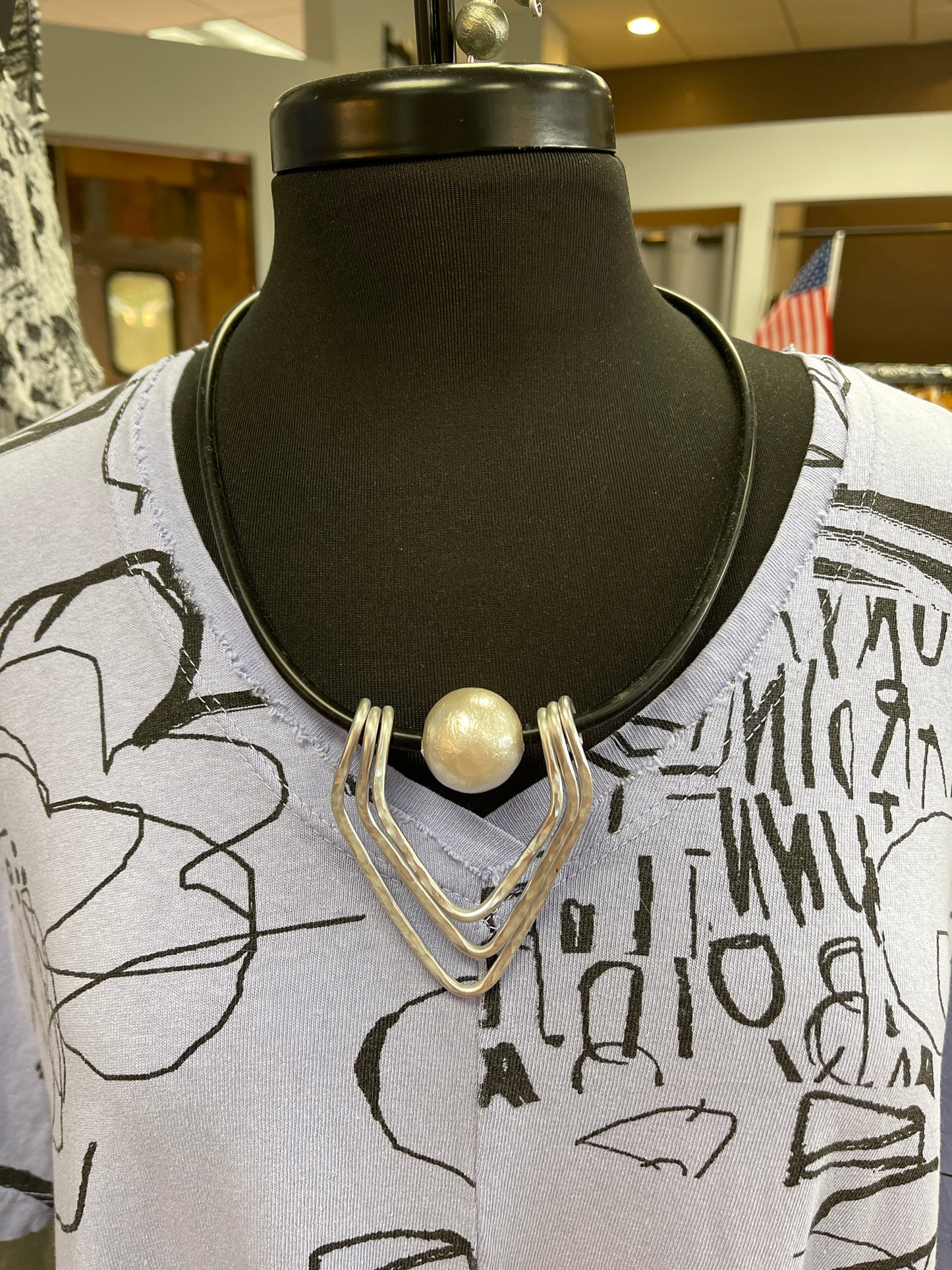 The White Cotton Cellulose and Aluminum Handmade Necklace is created by our one-of-a-kind artist using recycled aluminum and inner tube to create unique and artistic wearable art.
