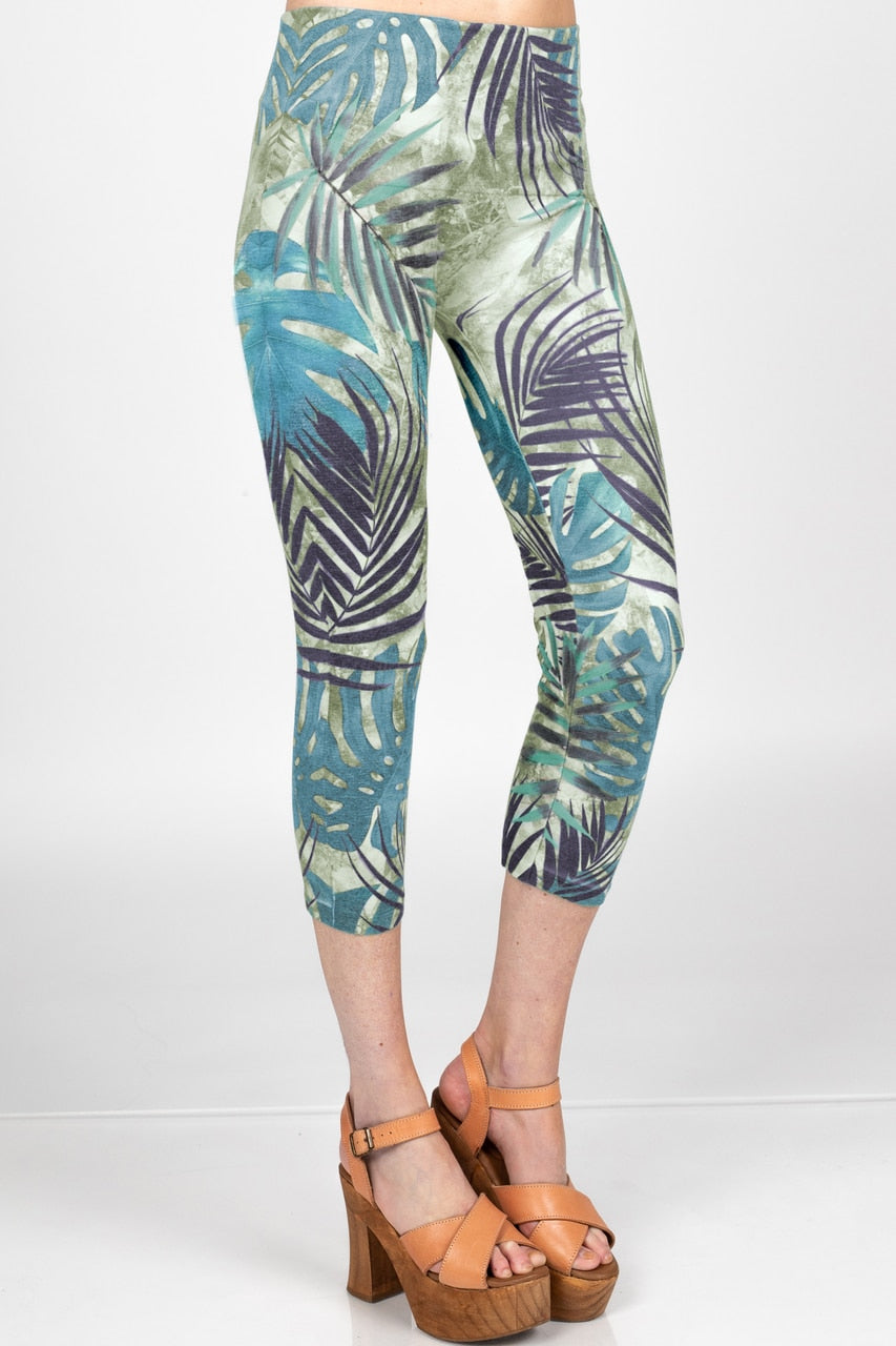 B4291U High Waist Crop Legging Tropical Leaves Print