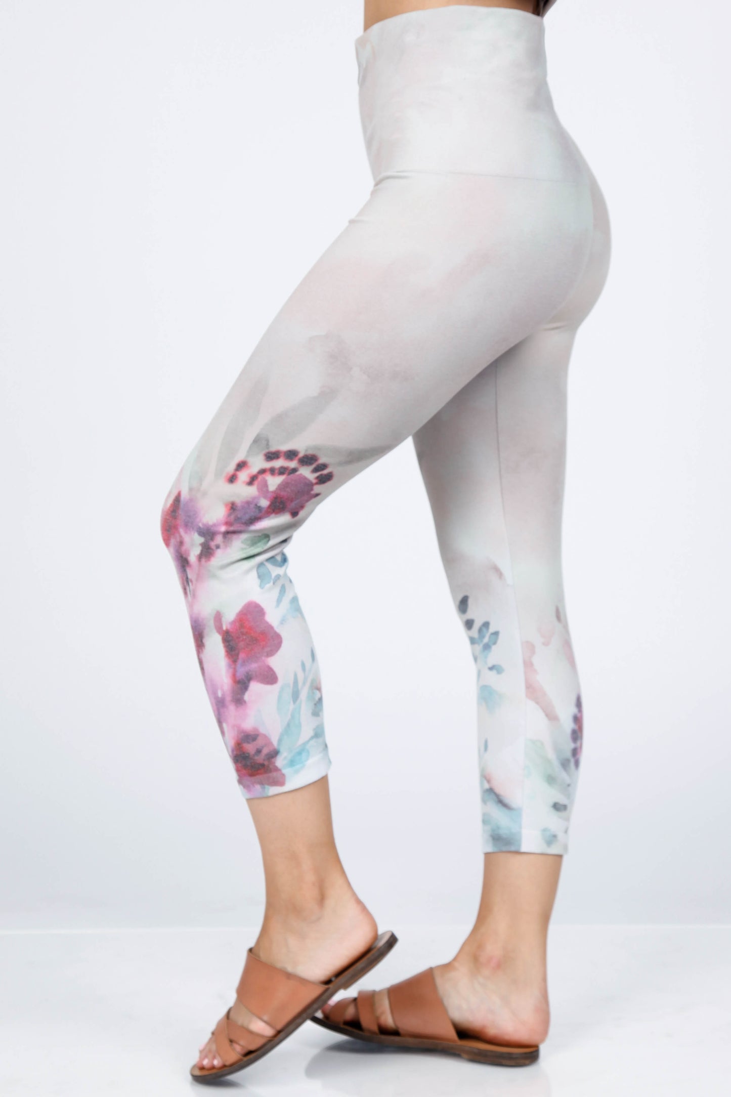 High Waist Crop Watercolor Floral Leggings