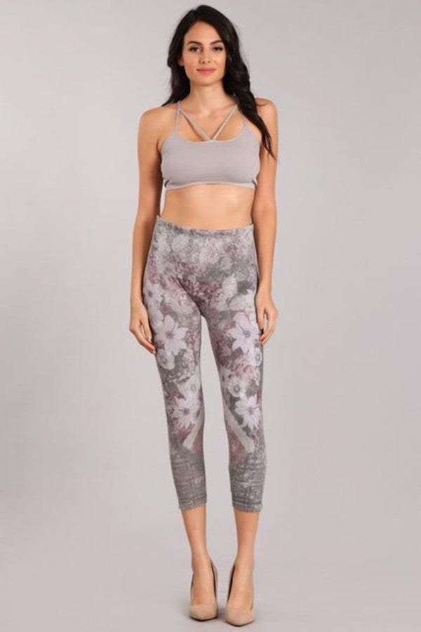 Regular price $18.90If you haven't tried one of M.Rena's sublimation reverse-knit leggings, now's the time! These high waist leggings are cropped & feature their iconic tummy control waistband and a floral abstract print.