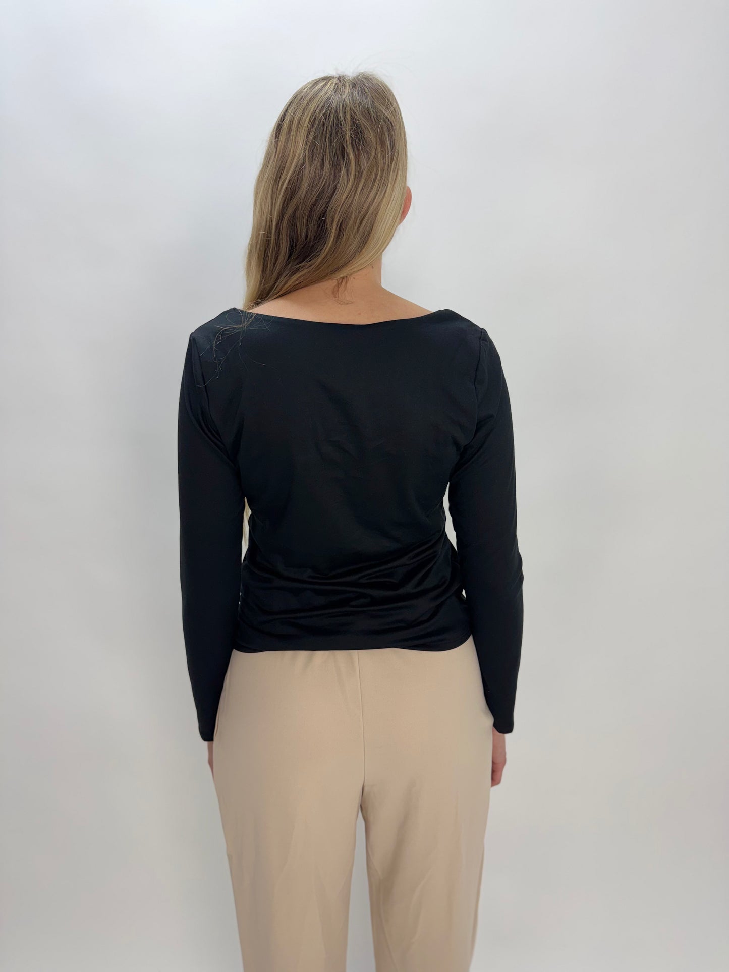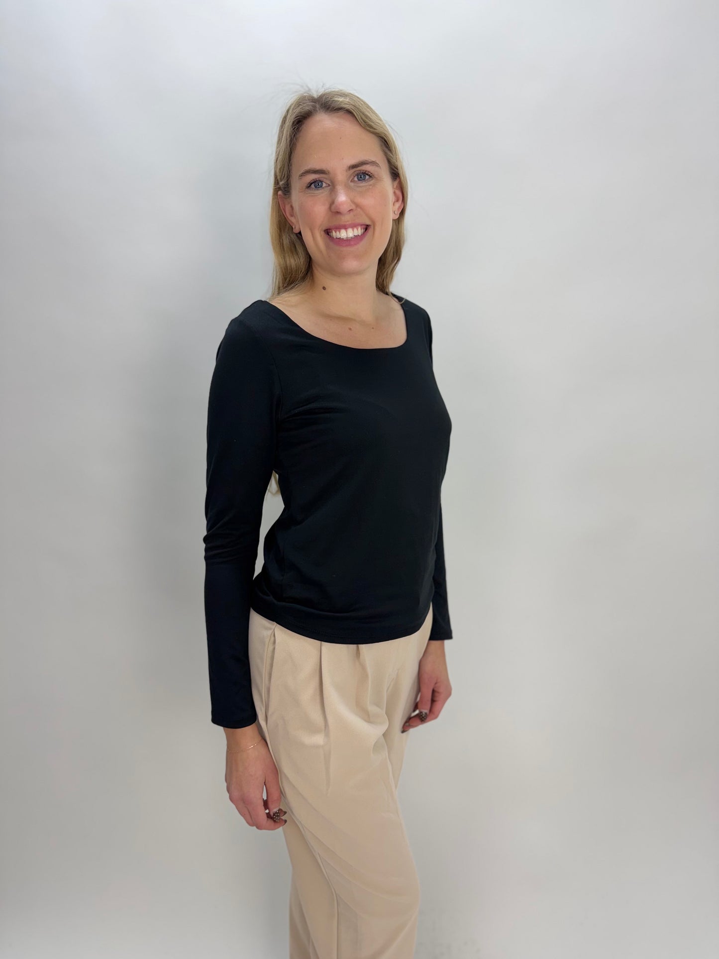 Black Modal Double Layered Scoop Neck Long Sleeve Top