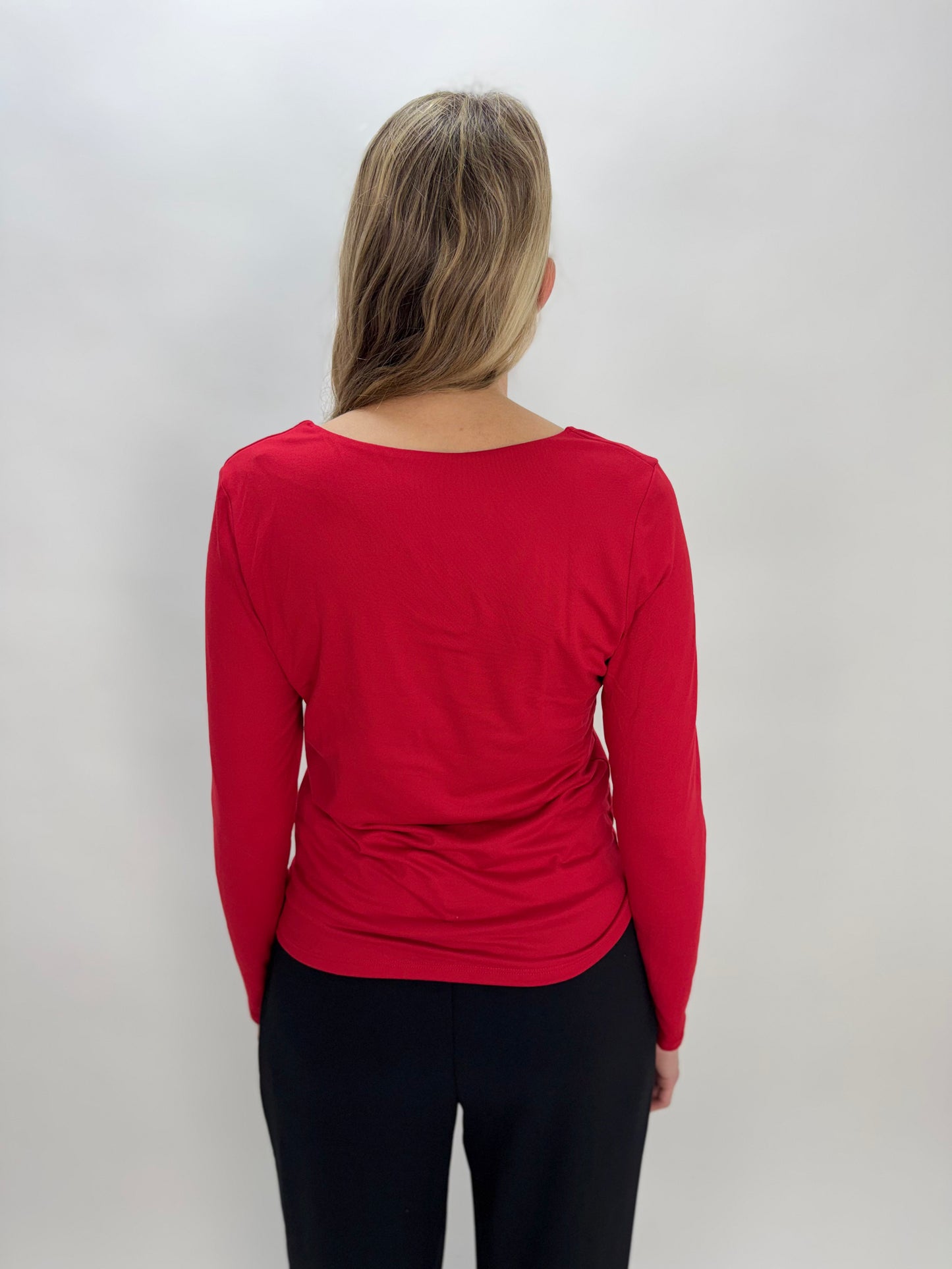 Red Double Layered V Neck Long Sleeve Top