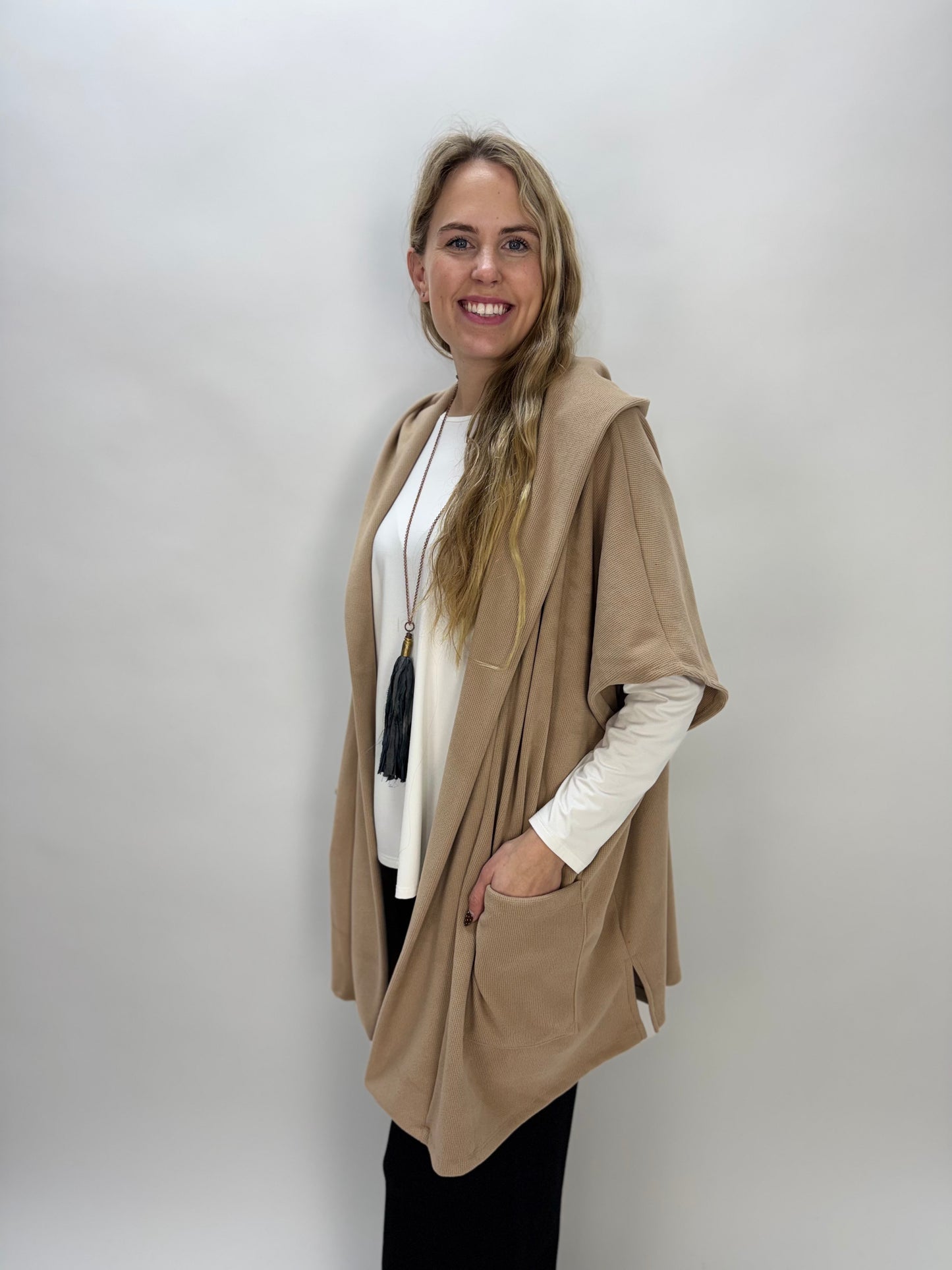 Tan Elbow Sleeve 2 Pocket Hoodie Cardigan