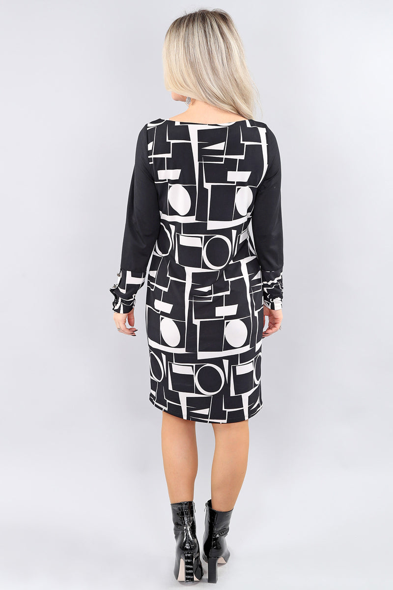 Black and Sand Printed Double Lined Long Sleeve Dress