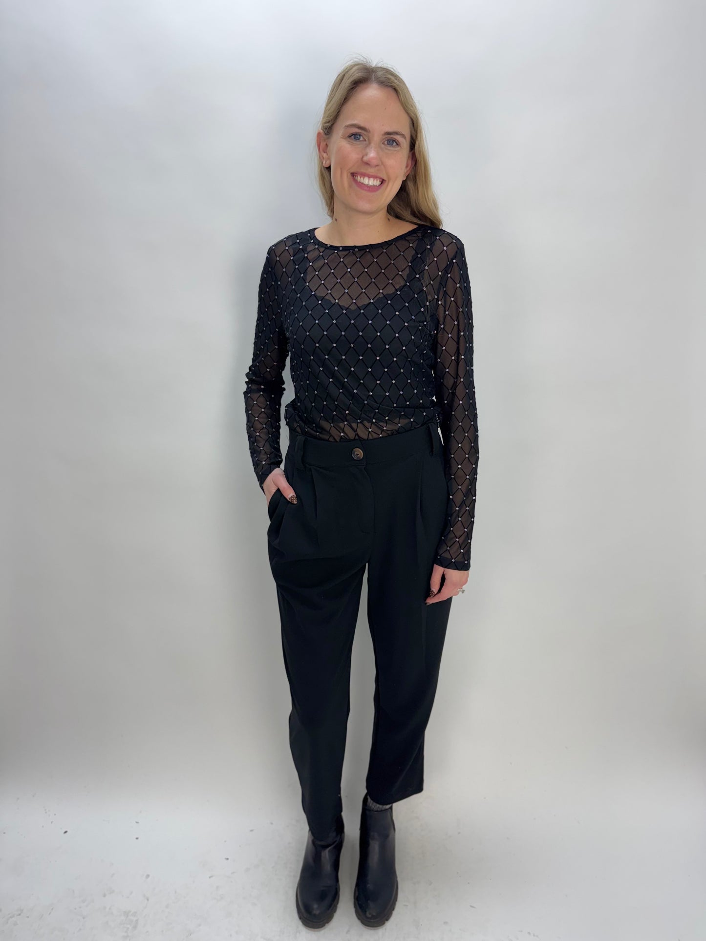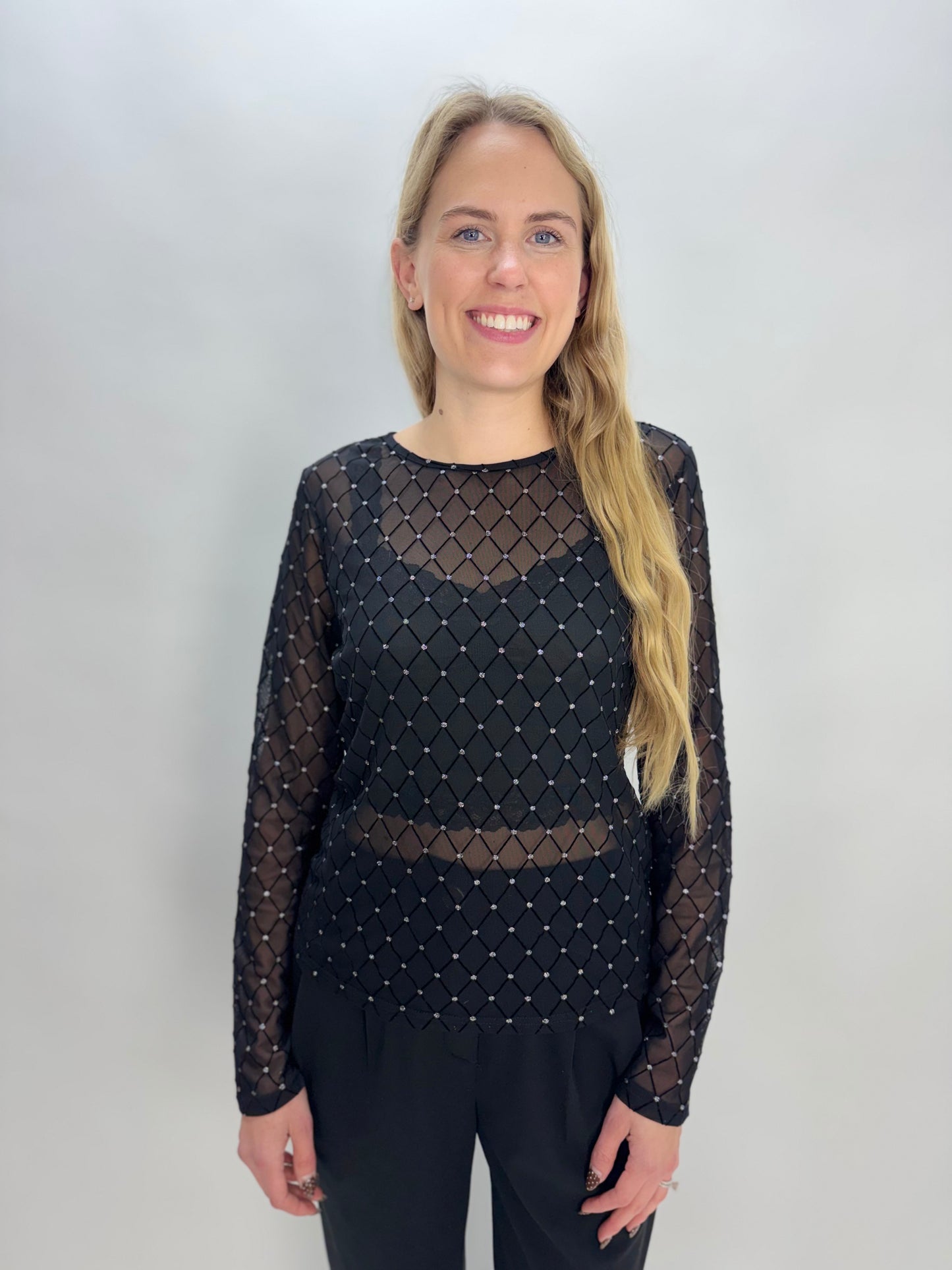 Black Mesh Long Sleeve Top With Sparkle Accent