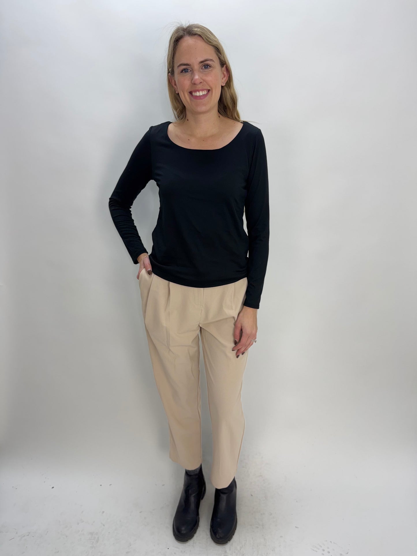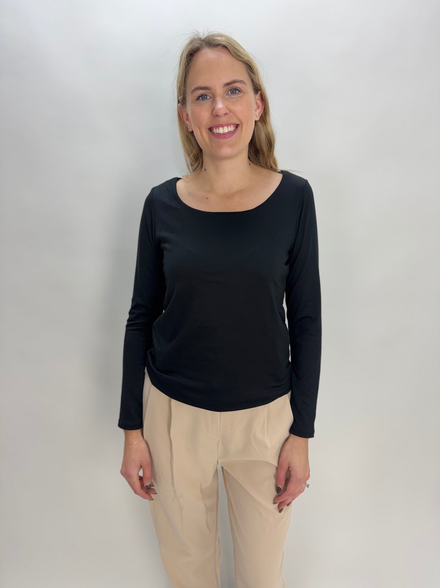 Black Modal Double Layered Scoop Neck Long Sleeve Top
