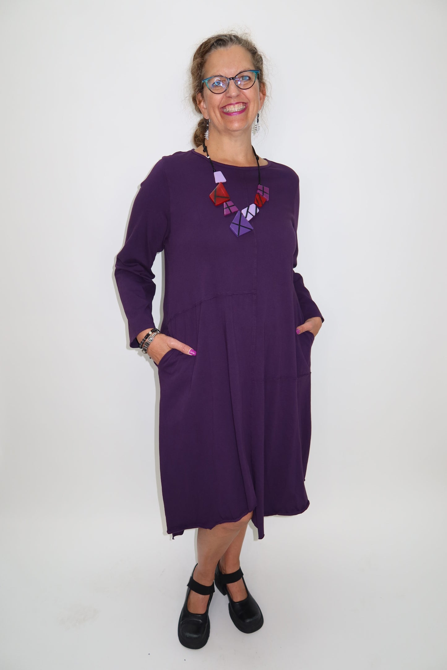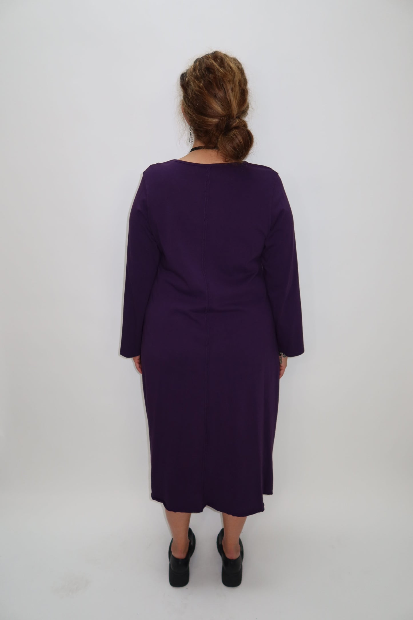 Blackberry Long Sleeve Asymmetrical Cotton Dress