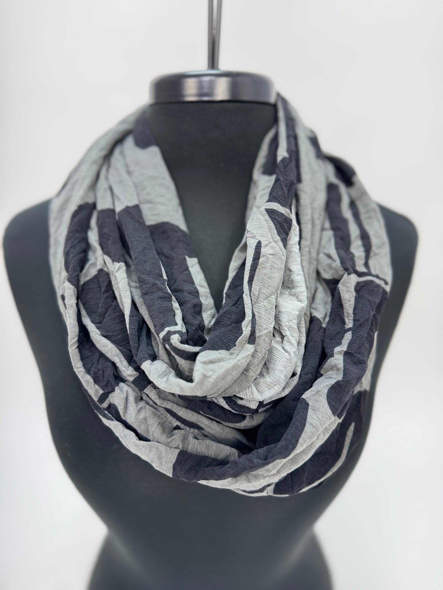 Gray and Black Pattern Crinkle Mesh Infinity Scarf