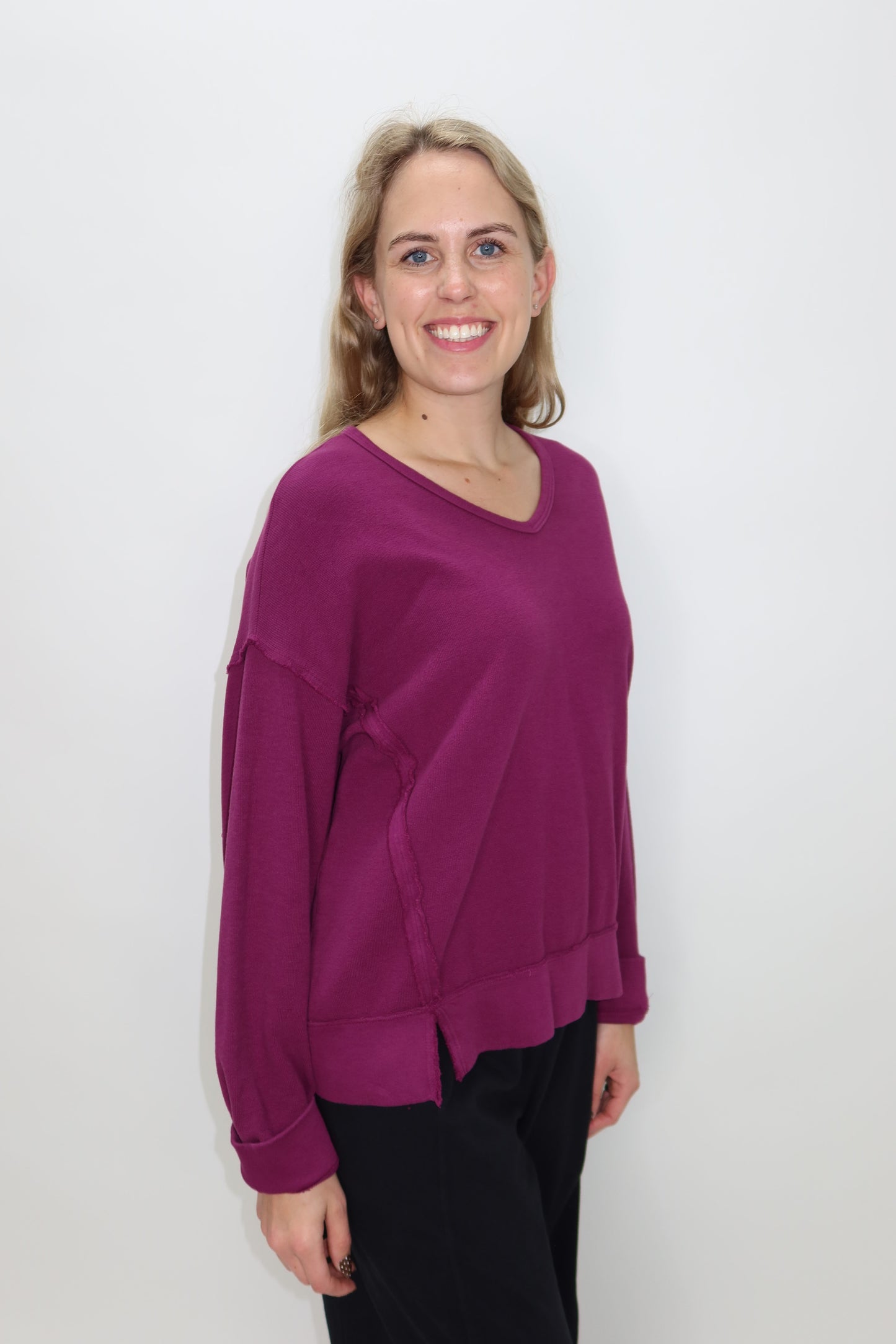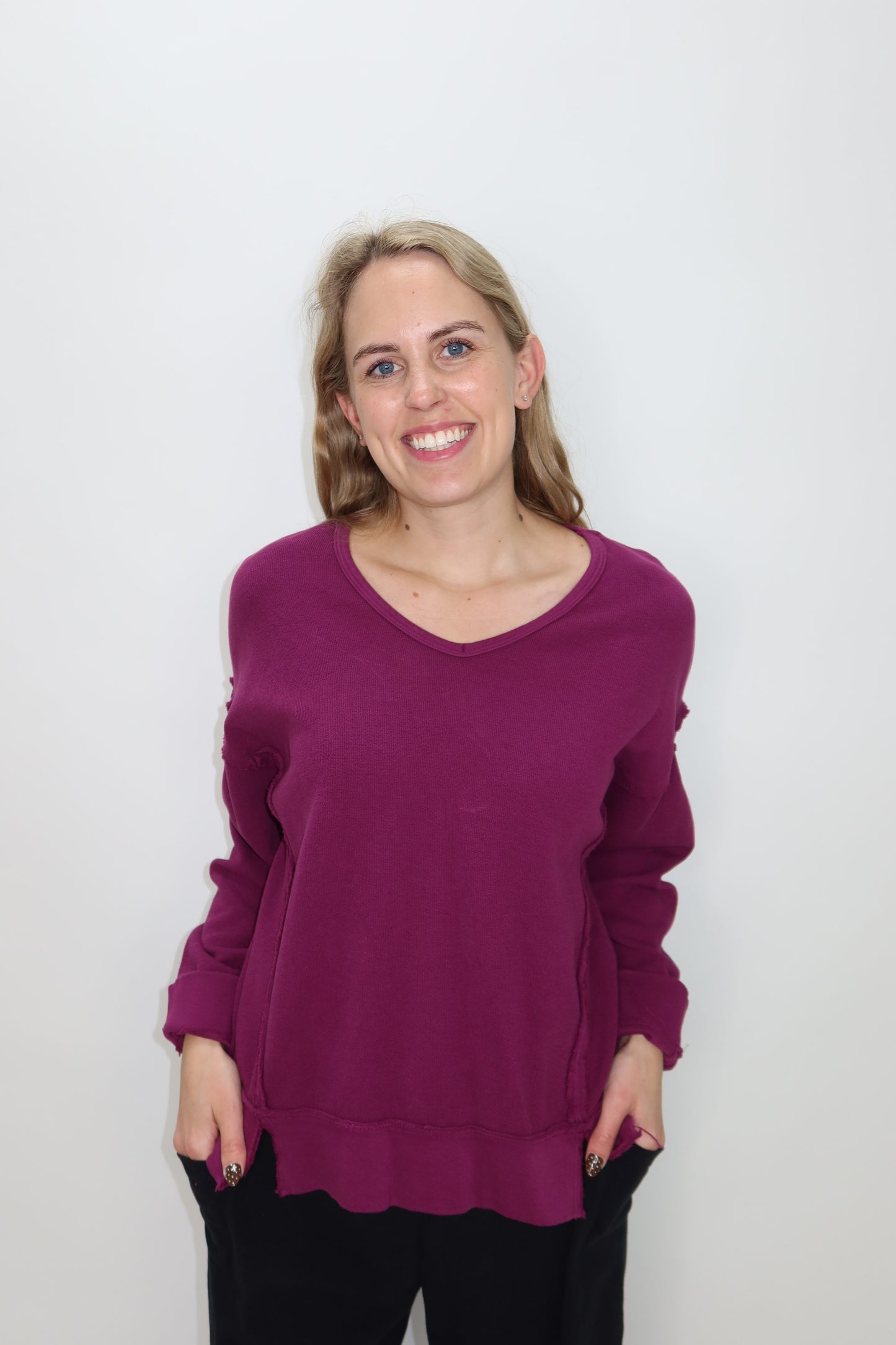 Huckleberry Pink V Neck Pull On Sweatshirt