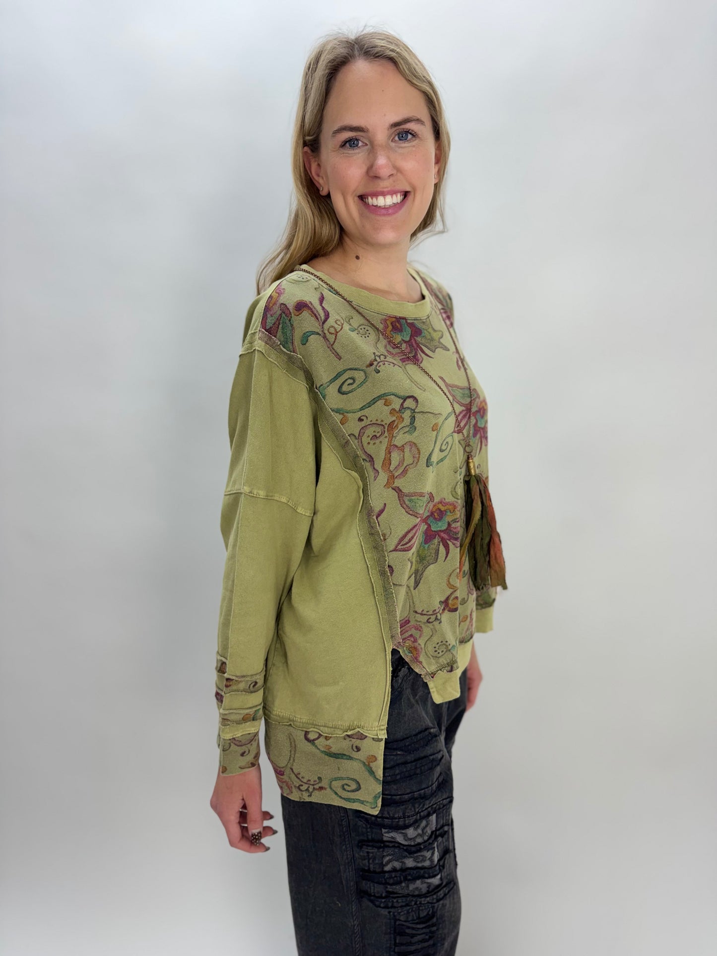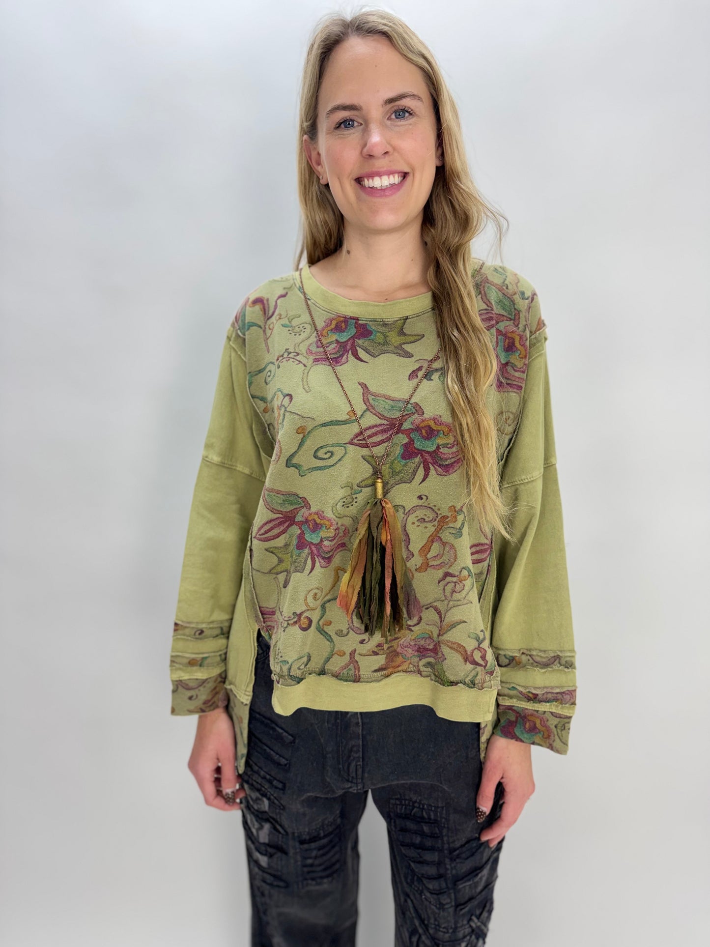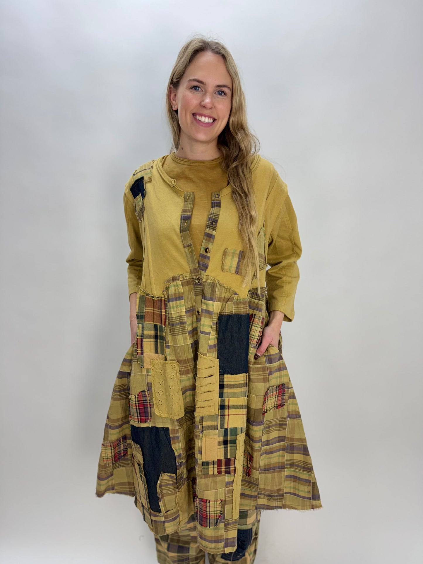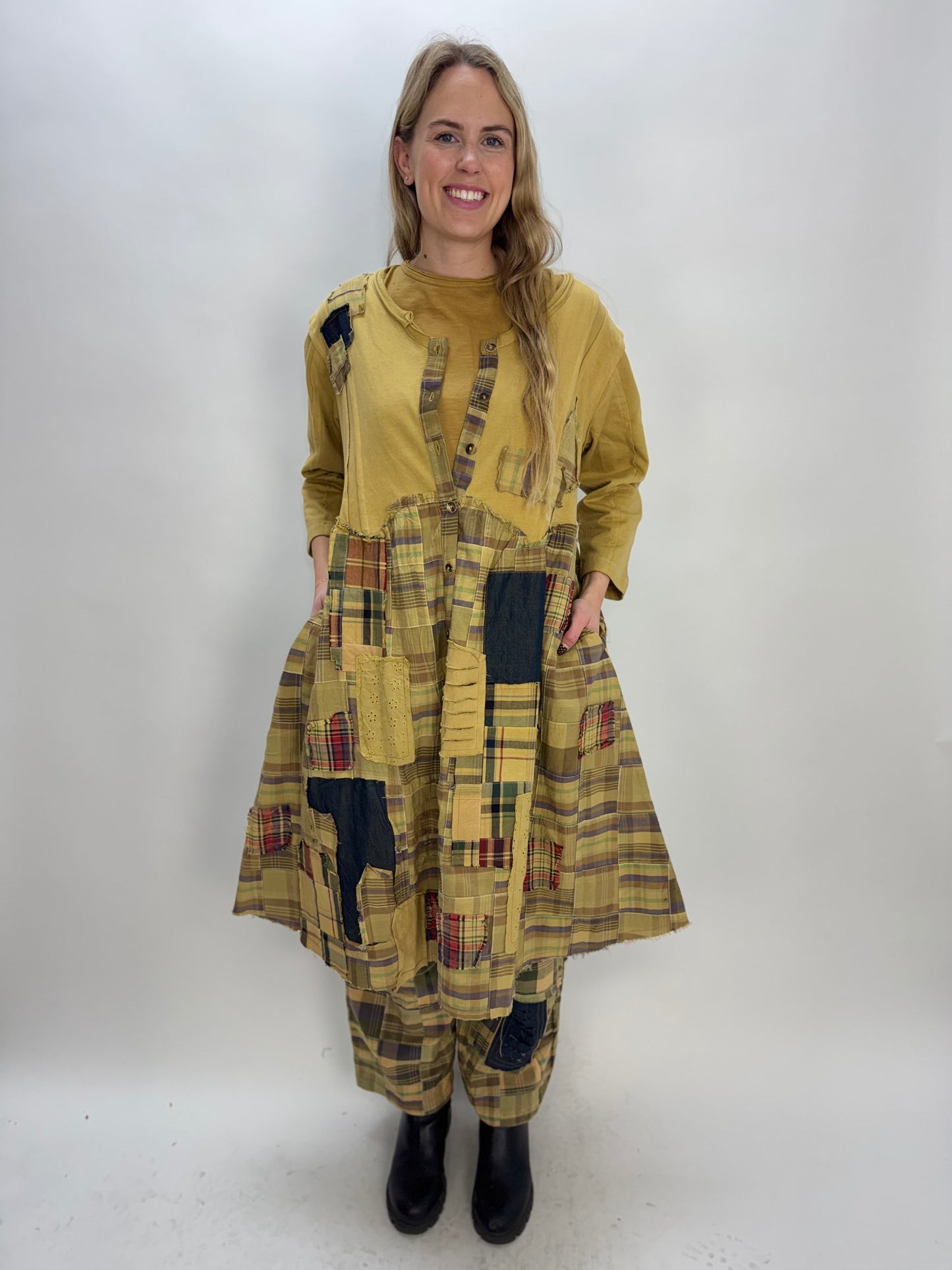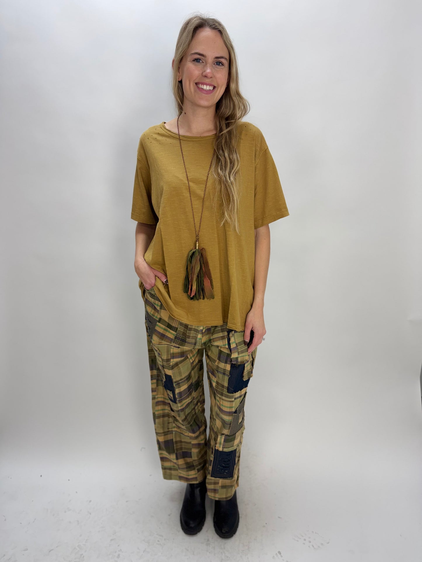 Mustard Vintage Wash Plaid Printed Fleece Top with Slits One Size