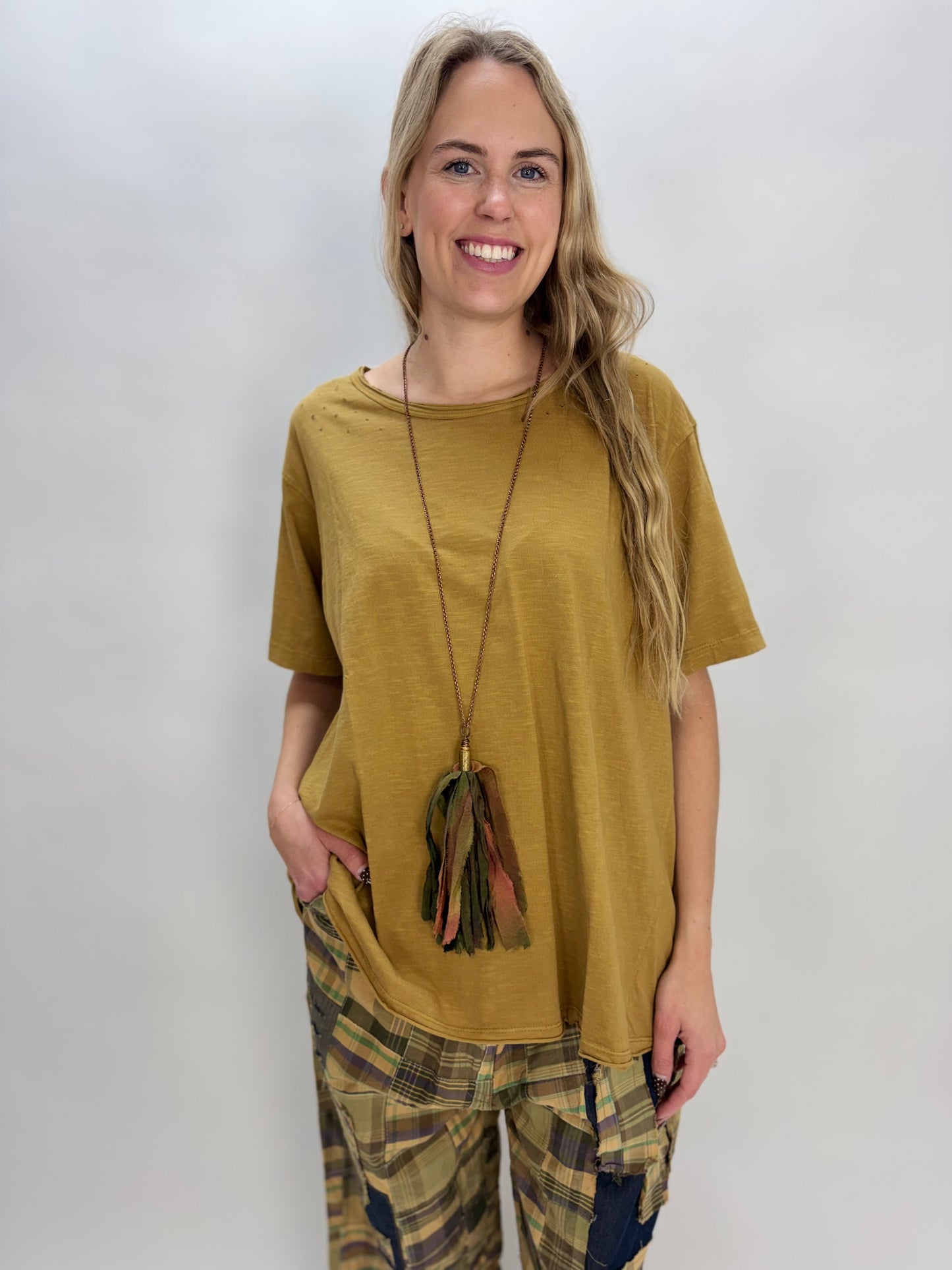 Mustard Paper Lace Solid Short Sleeve One Size Tee
