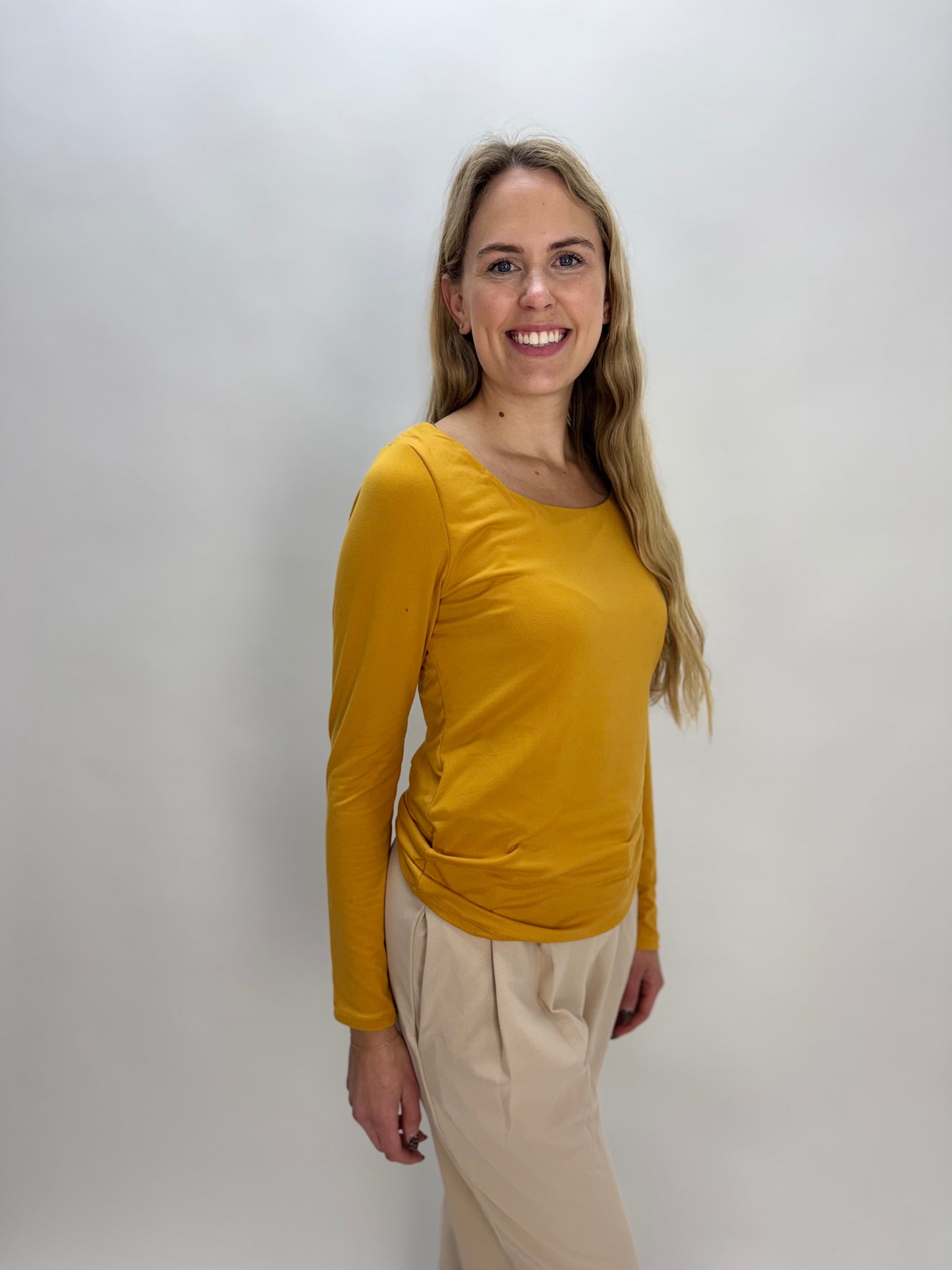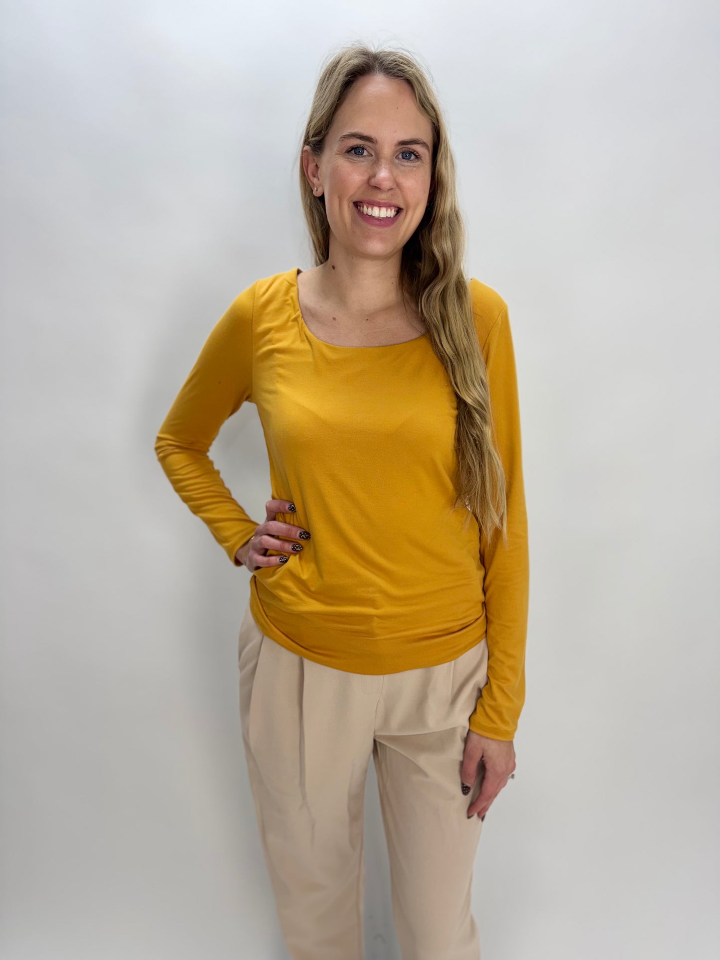 Mustard Modal Double Layered Scoop Neck Long Sleeve Top
