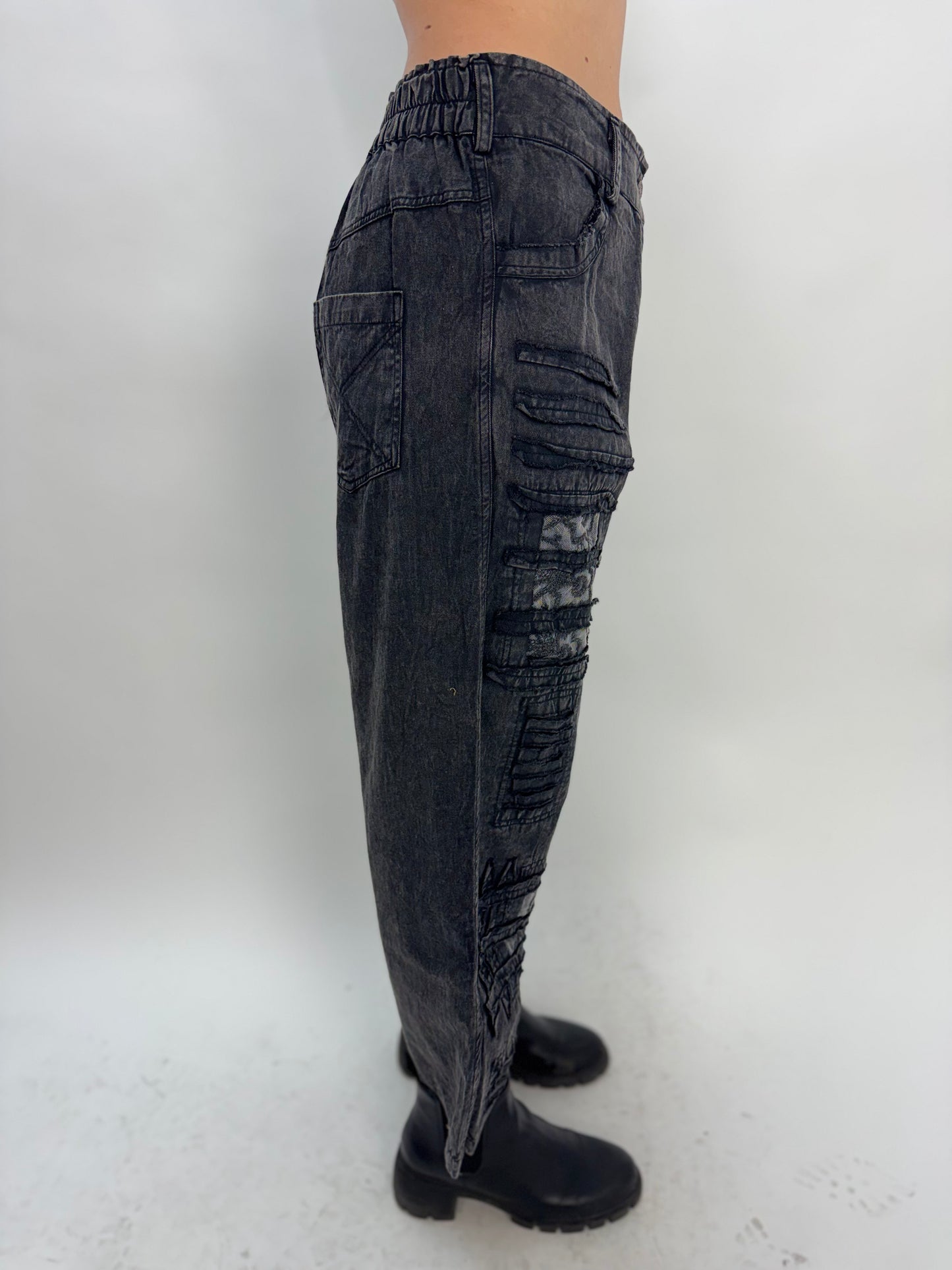 Upcycled Denim Patchwork Barrel Jeans