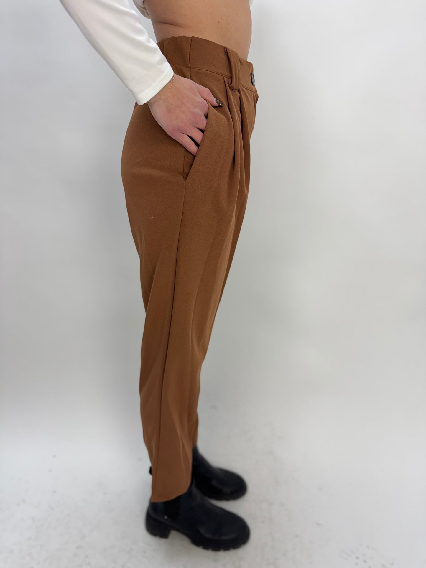 Camel Brown Full Length Dress Pant with Pockets