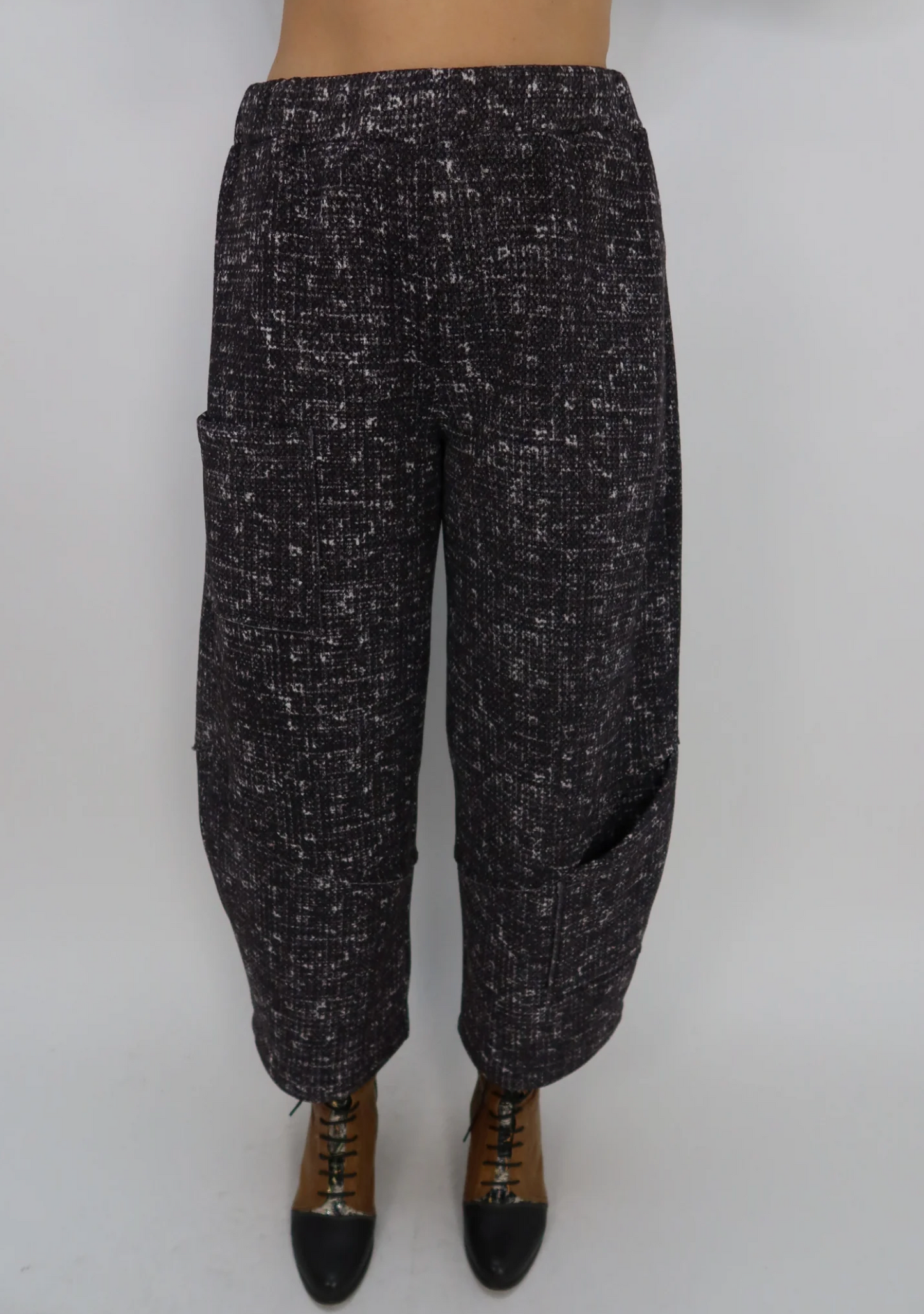 Gray Crosshatch Pattern Fleece Barrel Pant