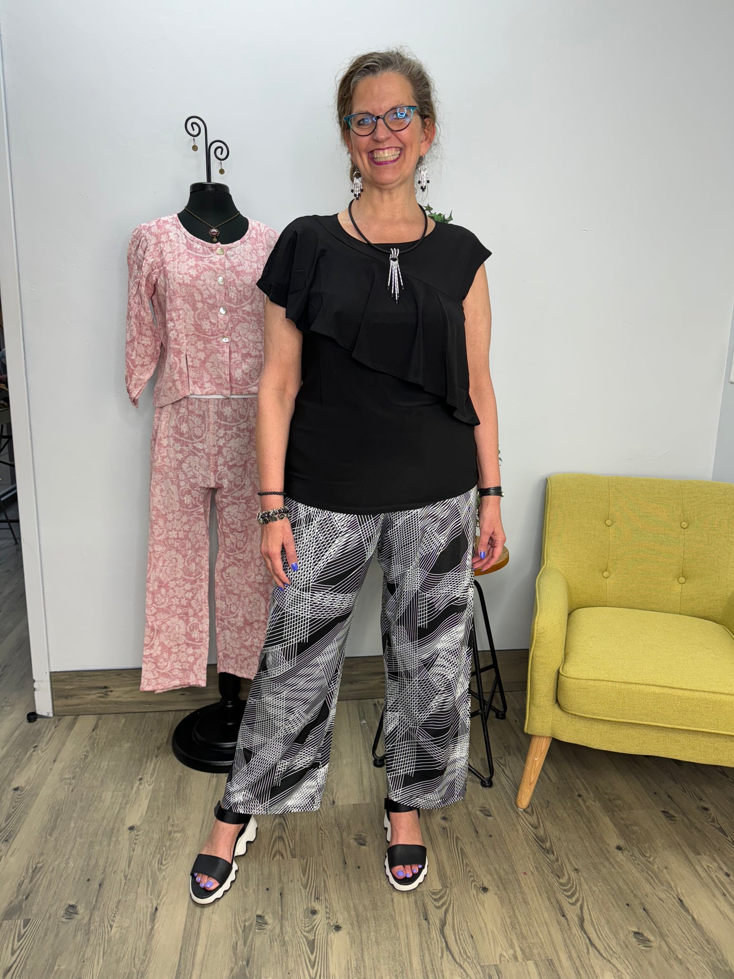 Regular price $63.20Experience comfort and style with the Black and White Striping ITY Tango Mango Pant! Made with ITY material, this full-length pant is easy to wear with its elastic waistband. Designed by Trish, it's the perfect choice for a fashionable and effortless look. Feel confident and free in this comfortable and stylish pant.