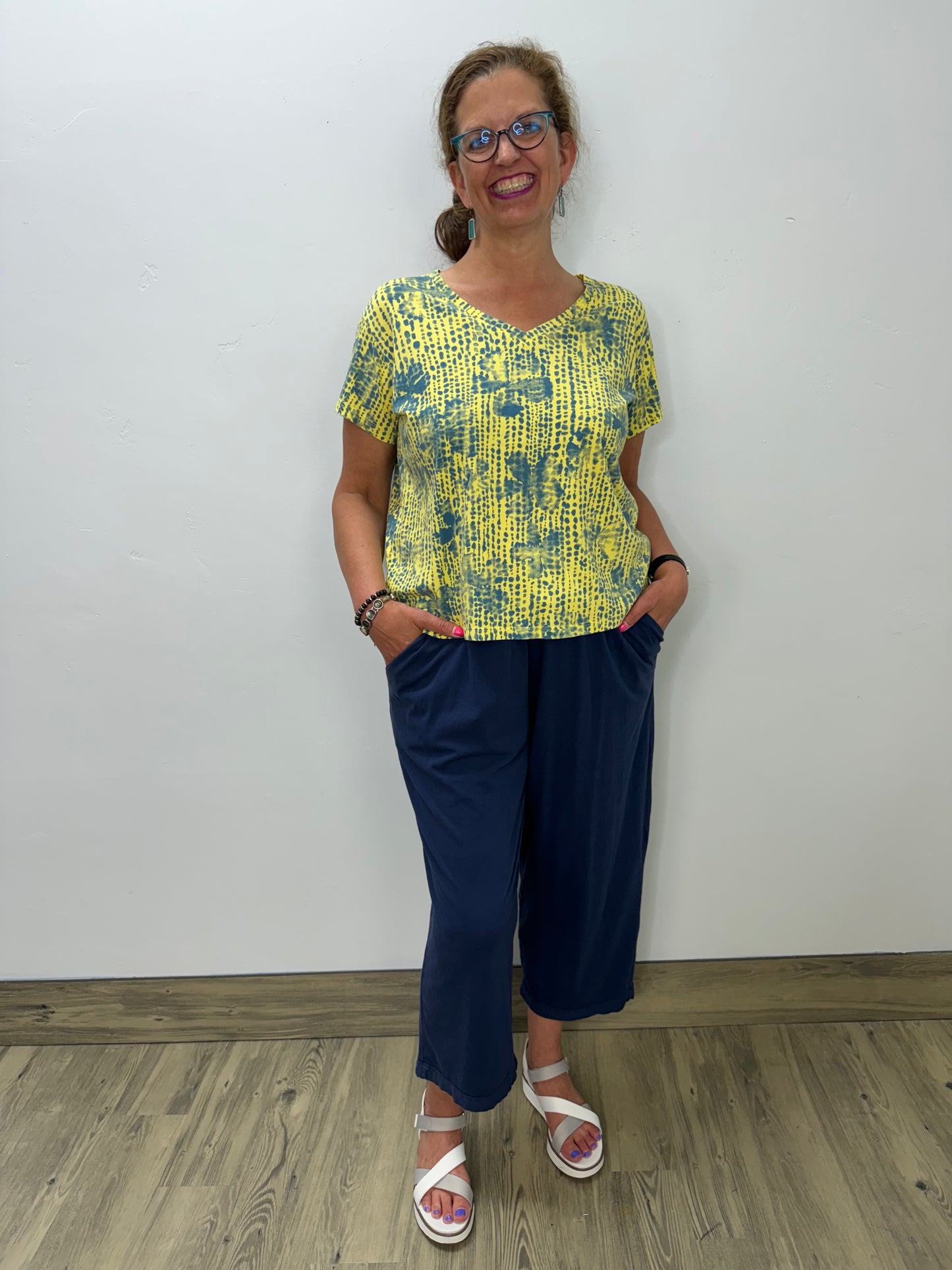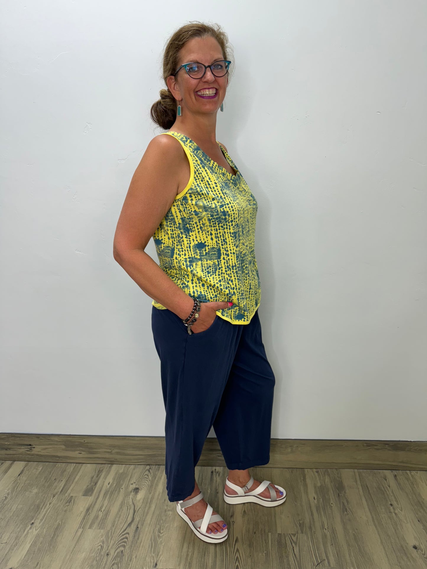 Introducing the Andi Crop Pant - the perfect blend of style and comfort. Made from Prairie Cotton's luxurious Jersey fabric, these beautiful navy blue pants are versatile for lounging, traveling or running errands. The elastic waistband guarantees a comfortable fit, while the addition of pockets adds convenience to your day. Upgrade your wardrobe with the RLX Andi Crop Pant!