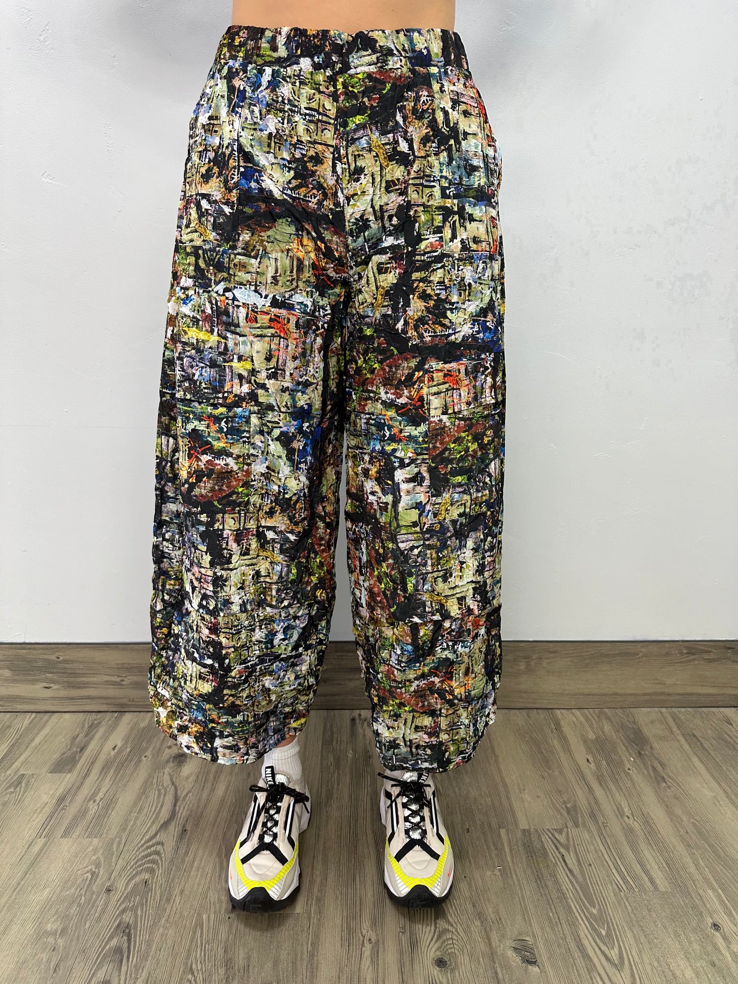 Regular price $167.30Feel confident and comfortable in Kozan's Archie City Pattern Ankle Pant. Made with a lightweight memory parachute fabric, these easy pull-on pants feature a flat front and elastic back waistband for a perfect fit. With four pockets, including two angled side pockets and two patch pockets on the legs, these cropped length pants have a wide leg that tapers slightly at the hem. Add a touch of style and functionality to your wardrobe with the Archie Pants.
