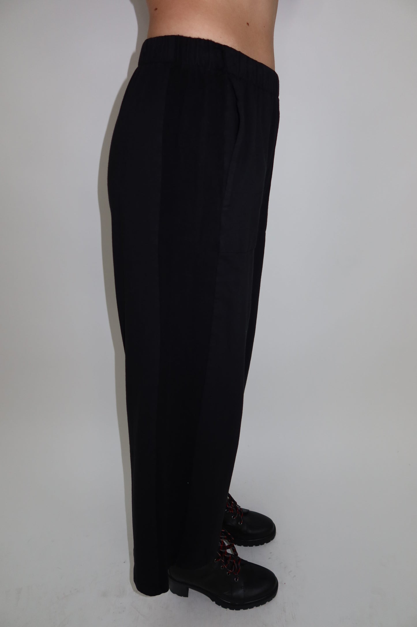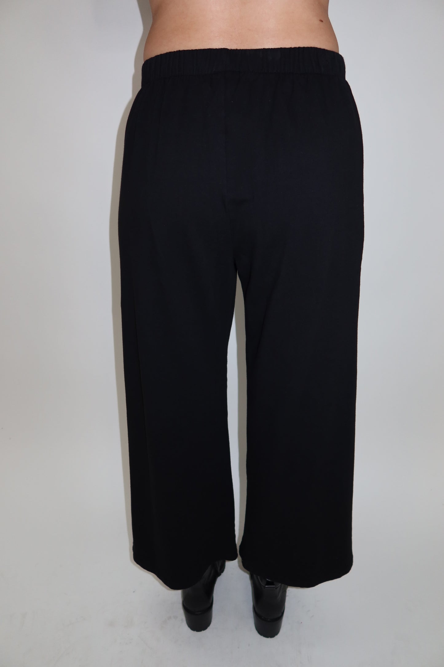 Experience ultimate comfort and style with our Black Fleece Wide Leg Cotton Pants. Made from beautifully soft cotton, these pants feature an elastic waistband for a perfect fit. The side panel design creates a flattering slimming effect, enhancing your silhouette with ease. Ideal for those seeking both cozy wear and a chic, streamlined look.