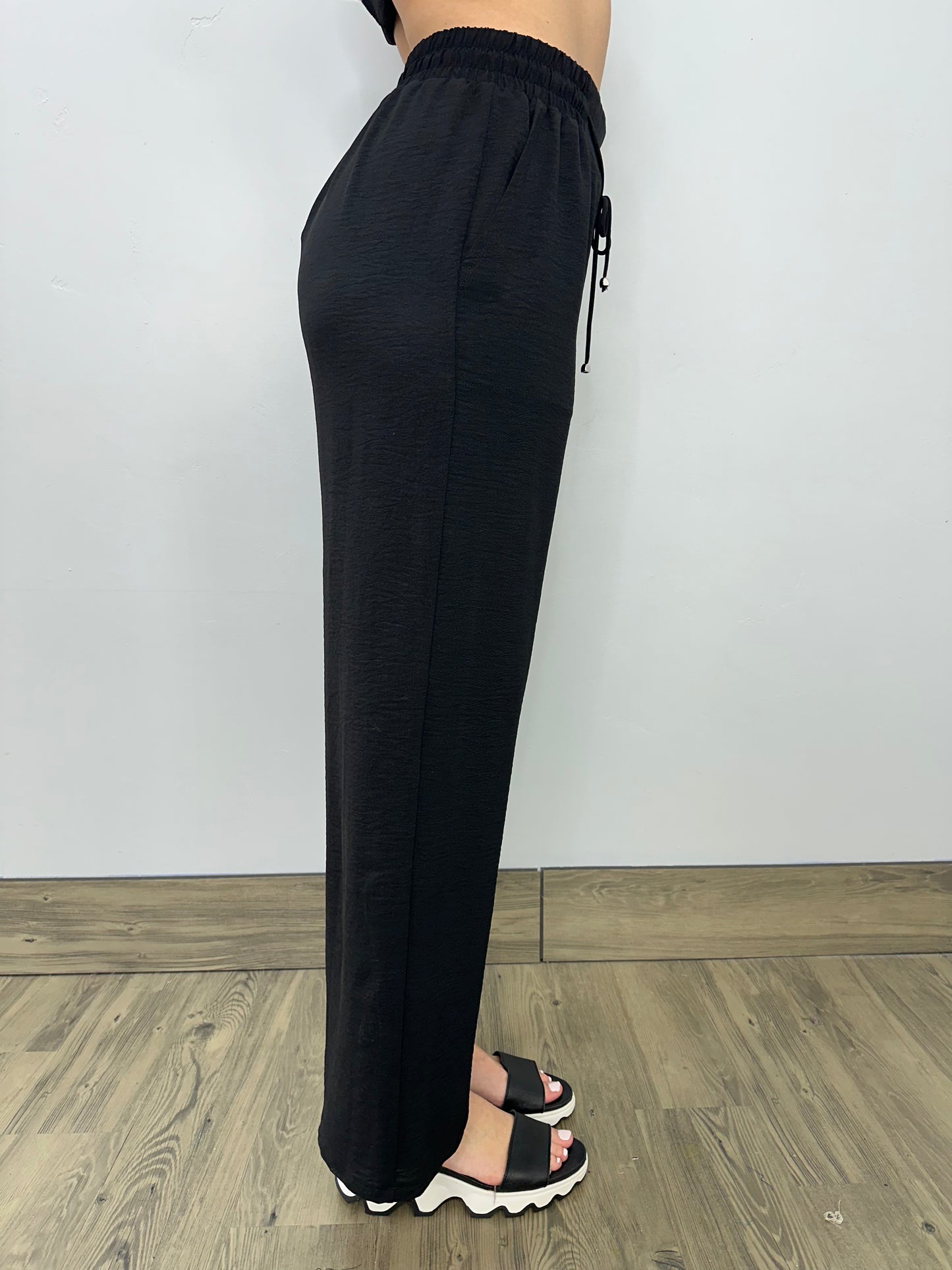 Get ready to fall in love with our Drawstring Black Pant! Made with a straight long design, these pants offer maximum comfort and style. Perfect for any occasion, dress them up or down for a versatile addition to your wardrobe. You won't want to take them off!