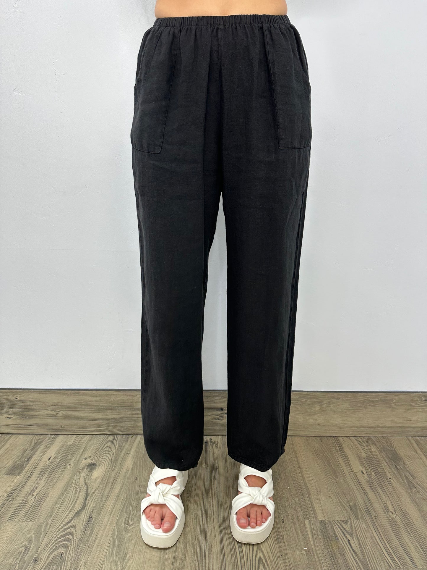 Discover the perfect pant for all-day comfort and style! Our Black Straight Leg Pant features two convenient pockets and an elastic waist for a perfect fit. Made with high-quality linen, these long pants will keep you feeling cool and chic all day long. Elevate your wardrobe with this must-have piece!