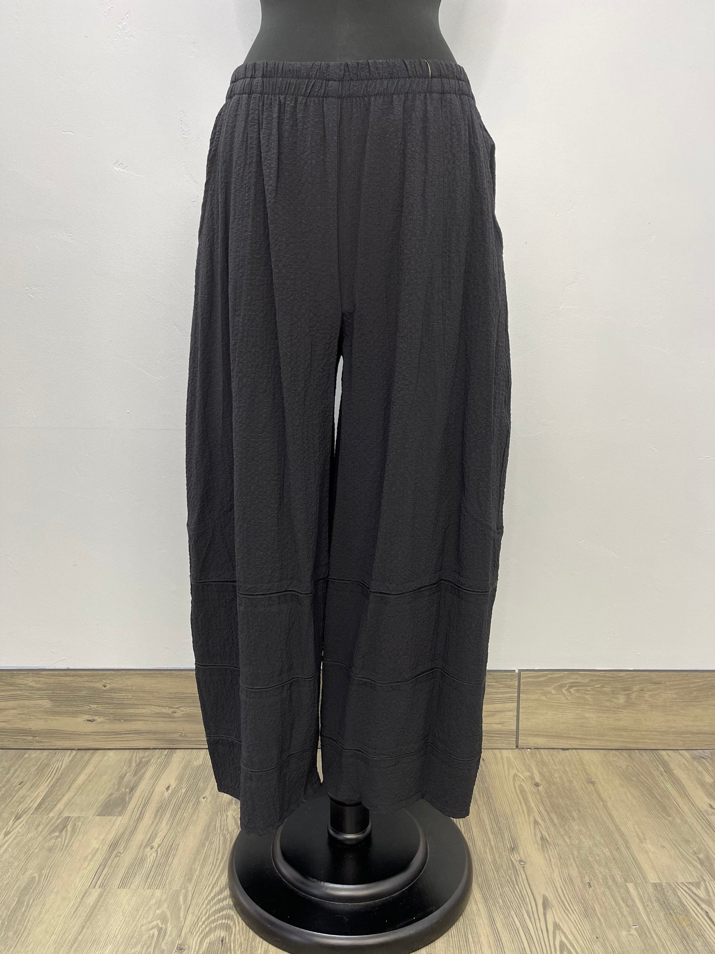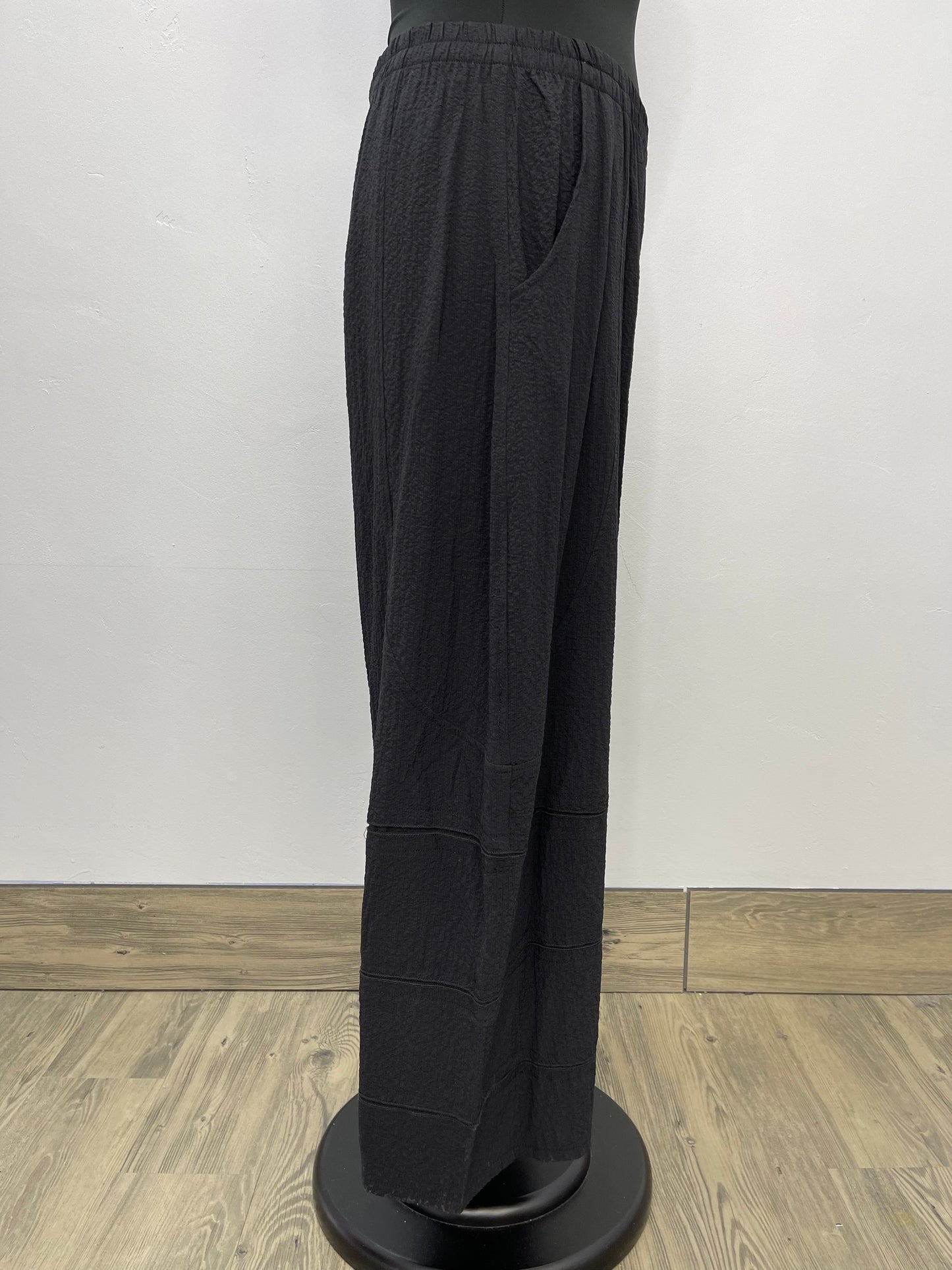 Stand out from the crowd in these statement-making black pants. With a texture full length cut, these pants will have you feeling so comfortable and stylish! Stay ahead of the fashion curve and get your hands on these pants!