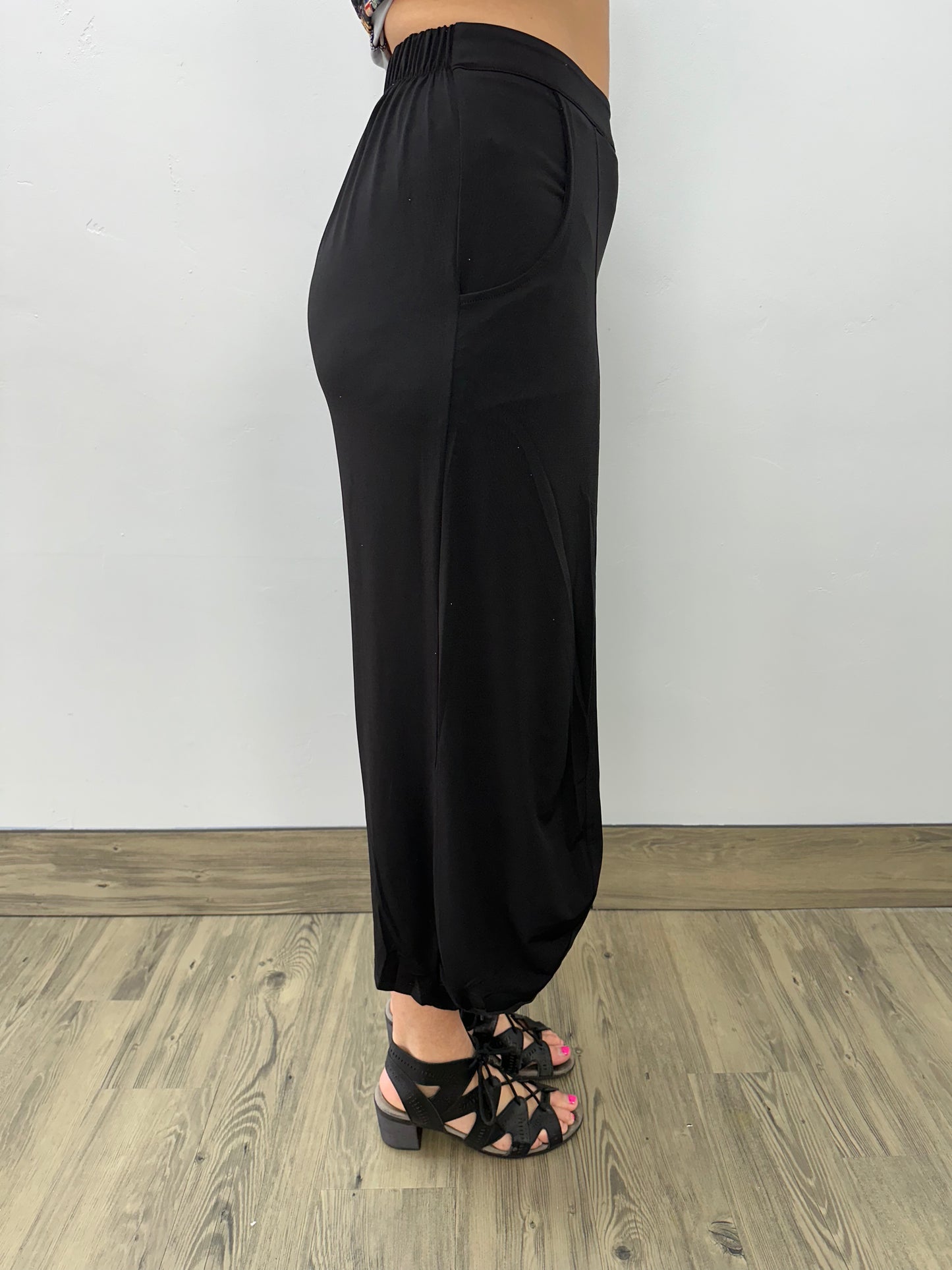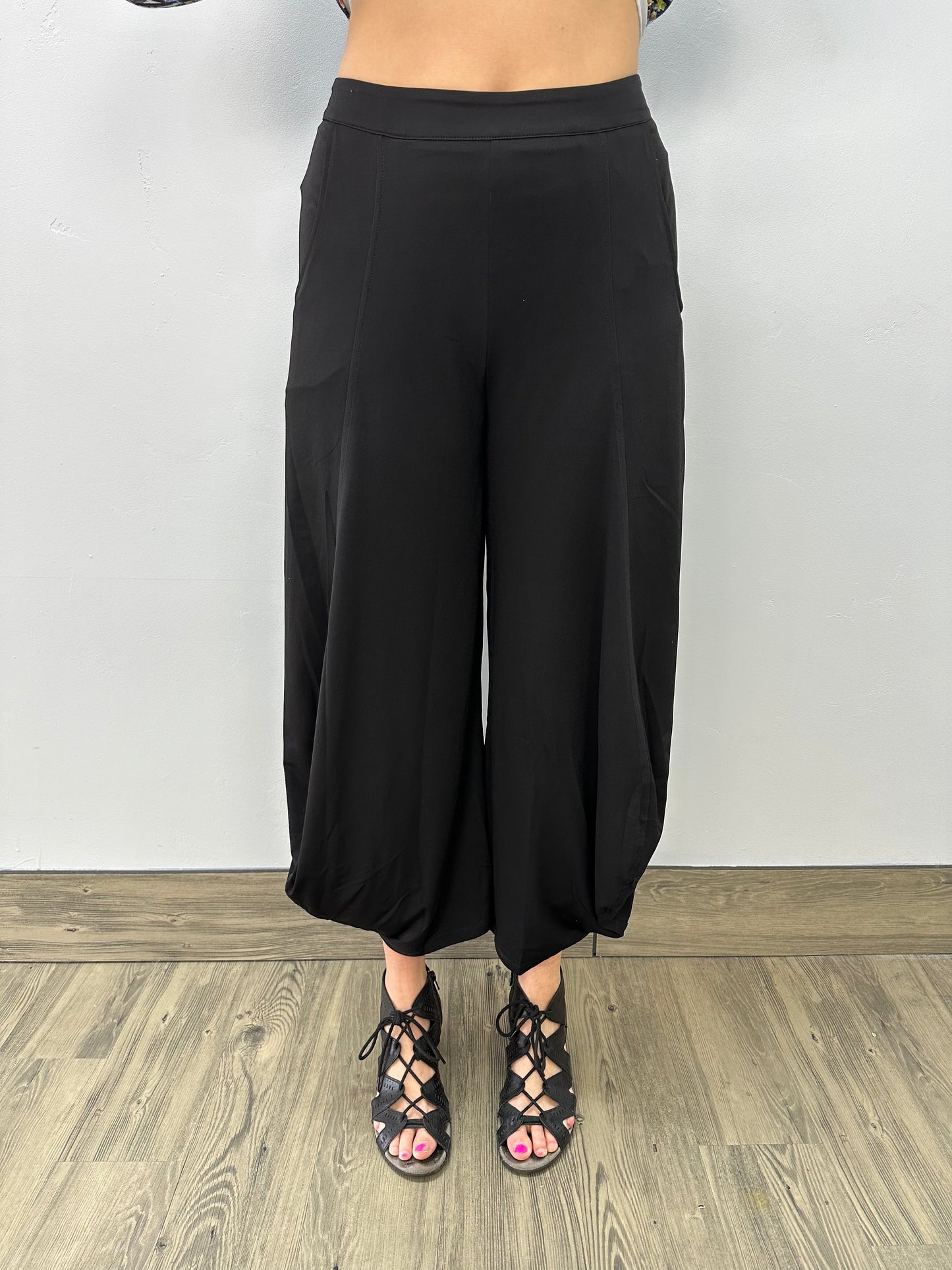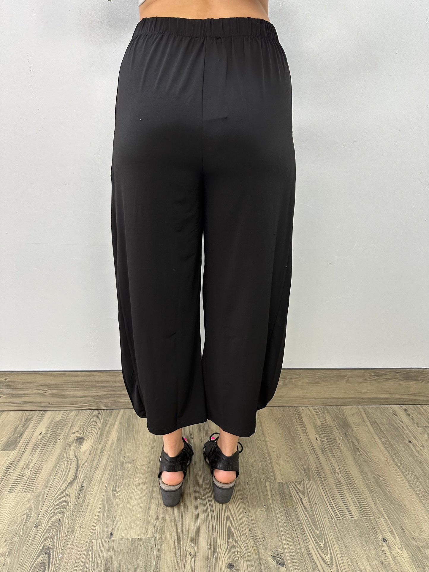 Step out in effortless fashion in Kozan's Jade Balloon Crop Pant, a must-have for every wardrobe. These timeless black bottoms feature a ballooned leg silhouette, seam detail for a full bottom and pockets at side seams — perfect for any season. Experience superior comfort with the pull-on waistband and stretch elastic at the back — you'll look amazing and feel confident every time!