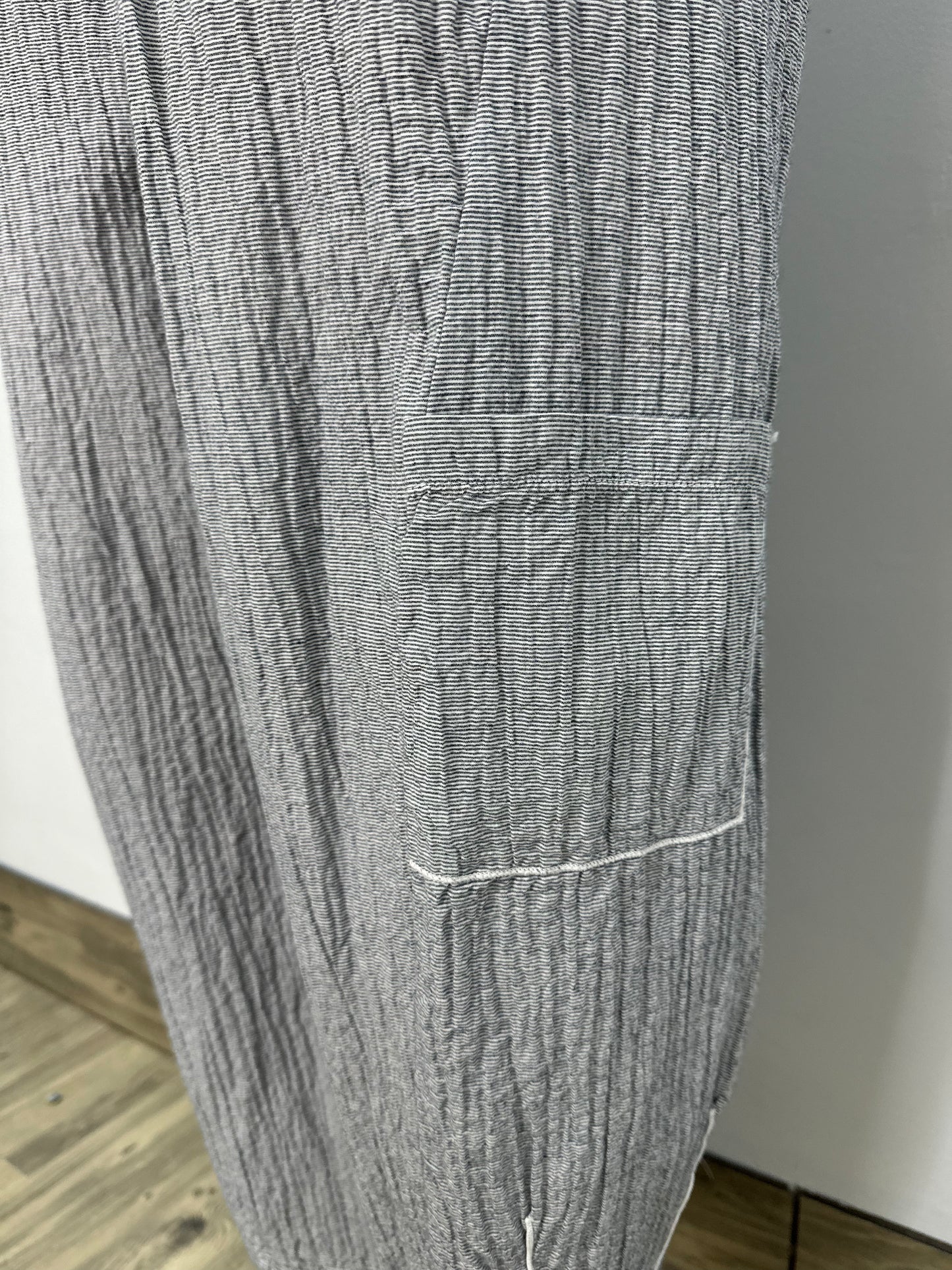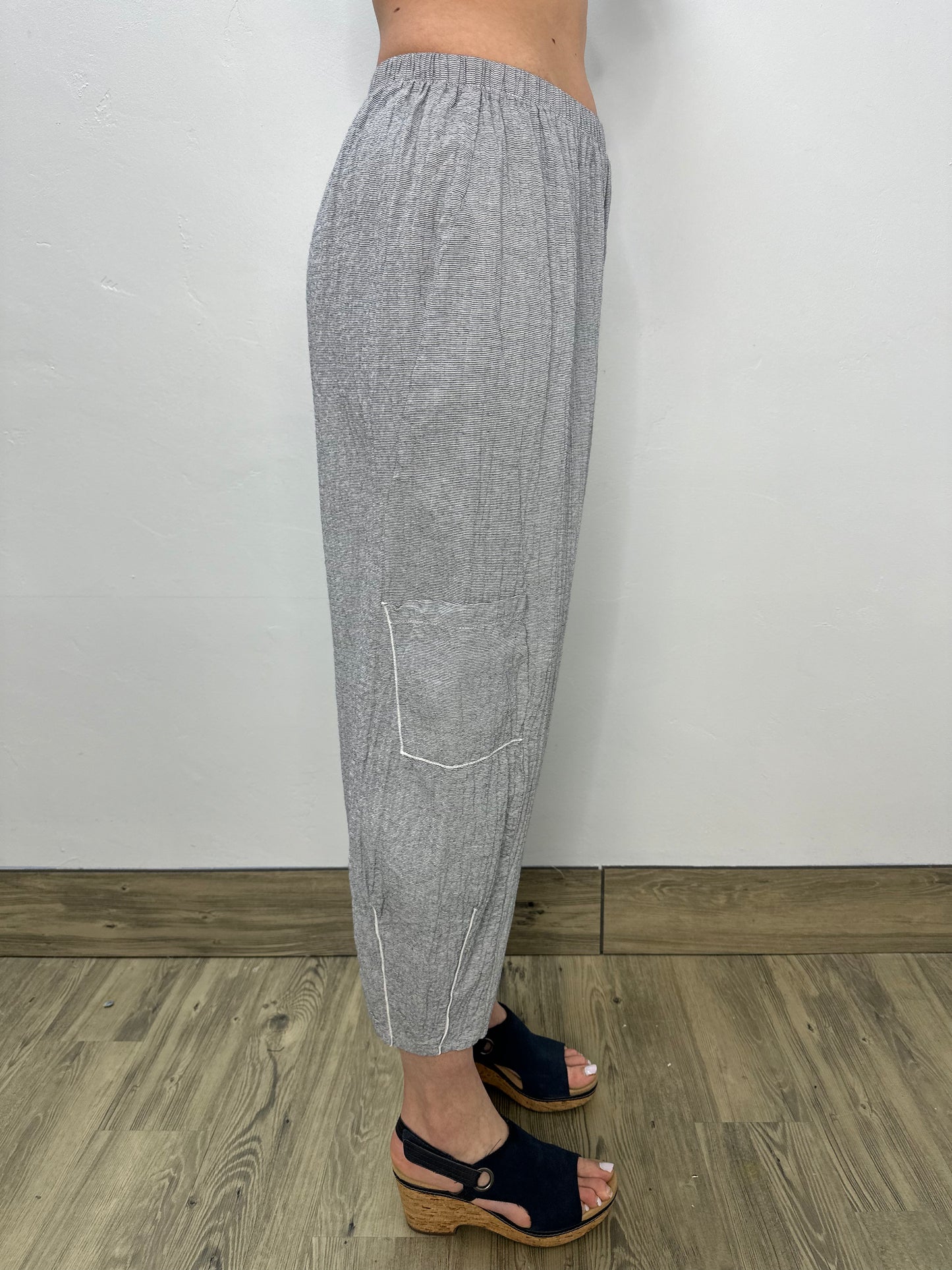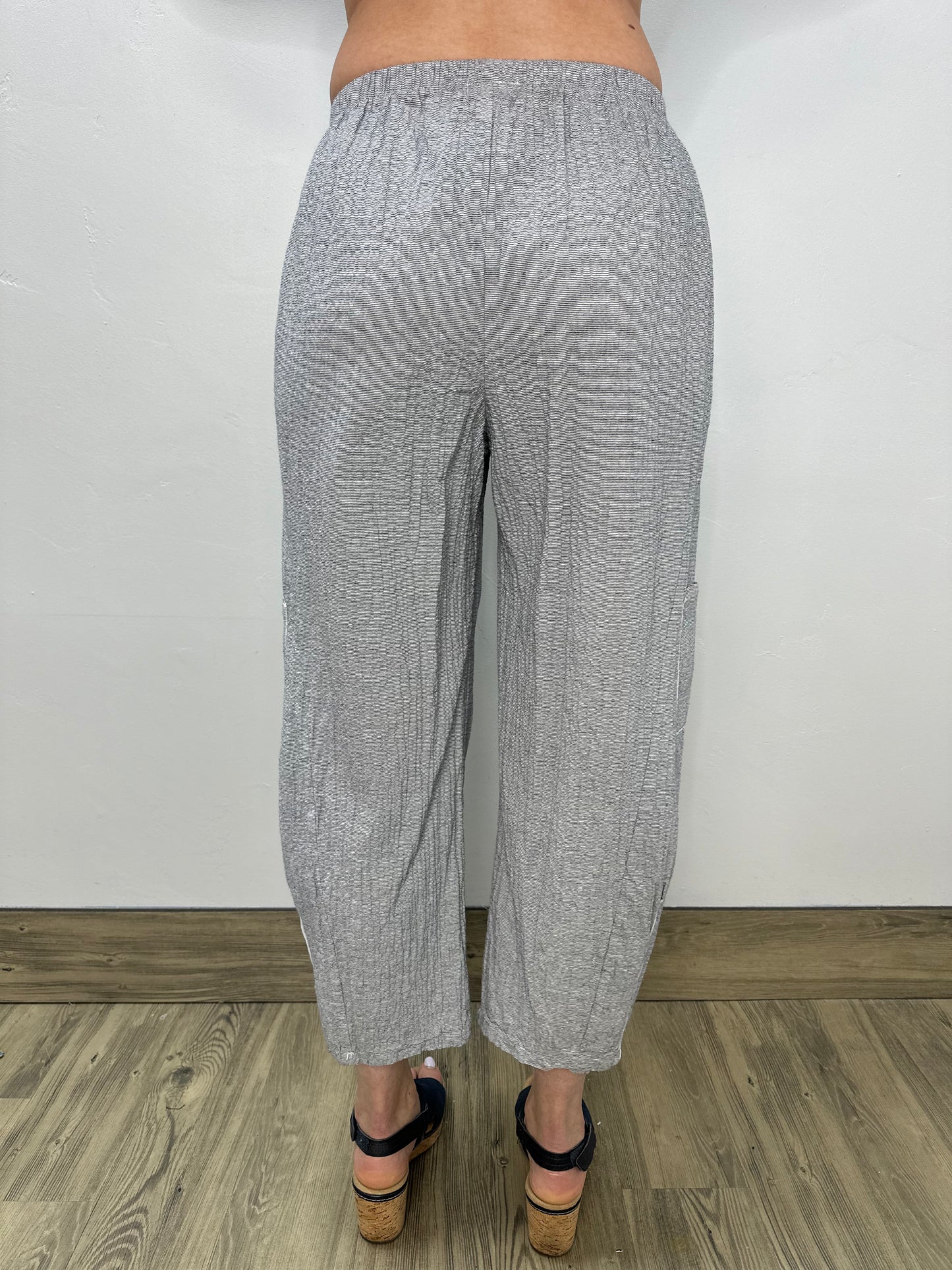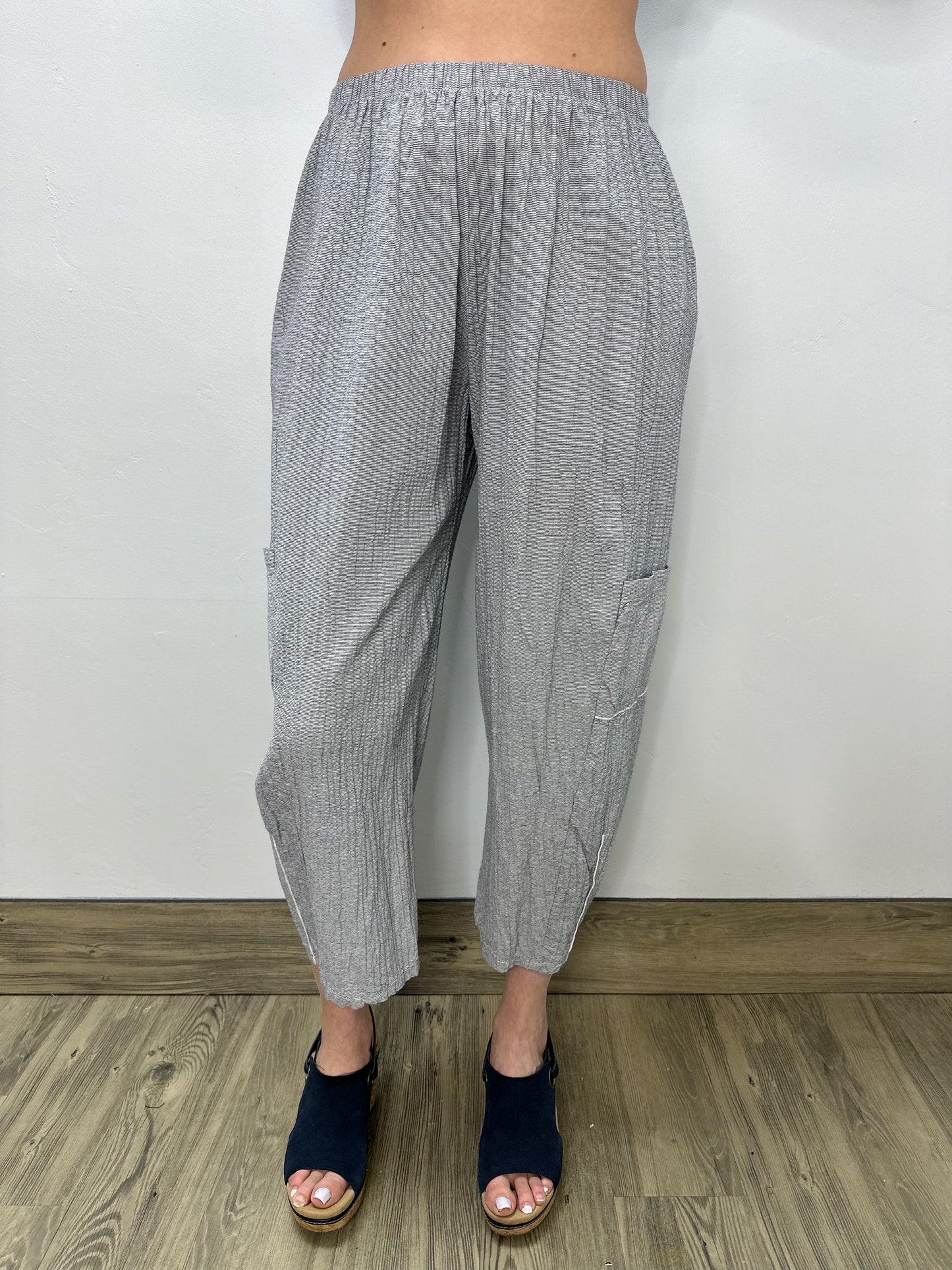 Regular price $119.20Elevate your wardrobe with our Blue Gray Textured Cotton Crop Pant! Made with a beautiful texture and subtle striping, these pocketed pants are sure to add a touch of sophistication to any outfit. The great fabric ensures both comfort and style, making them a must-have in your collection. Order now and experience the difference for yourself!