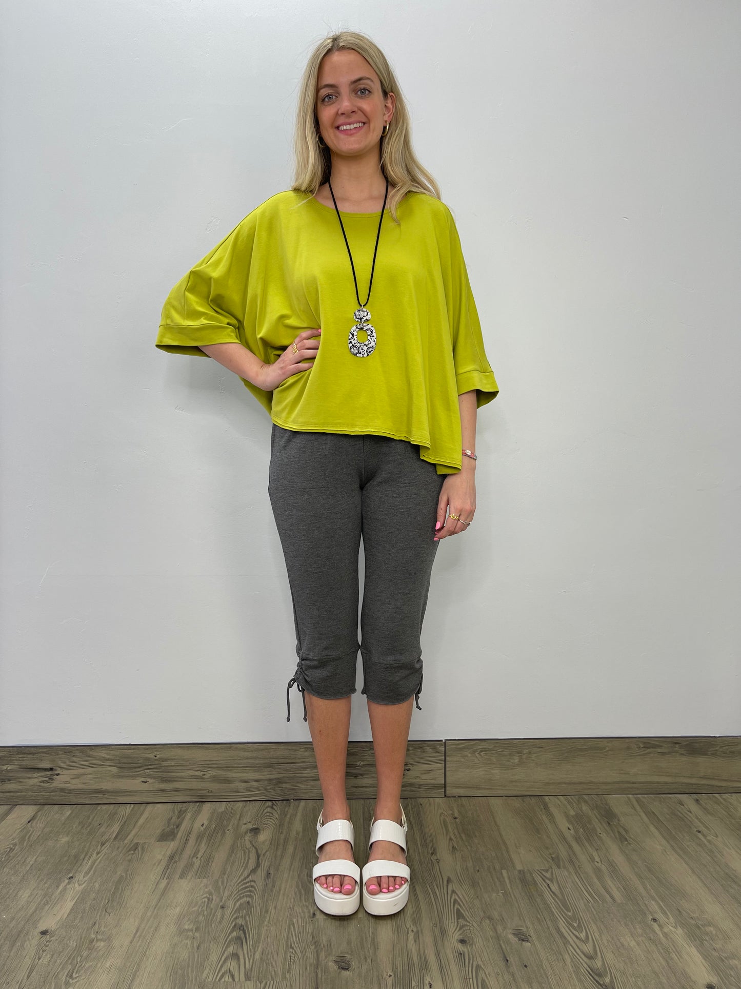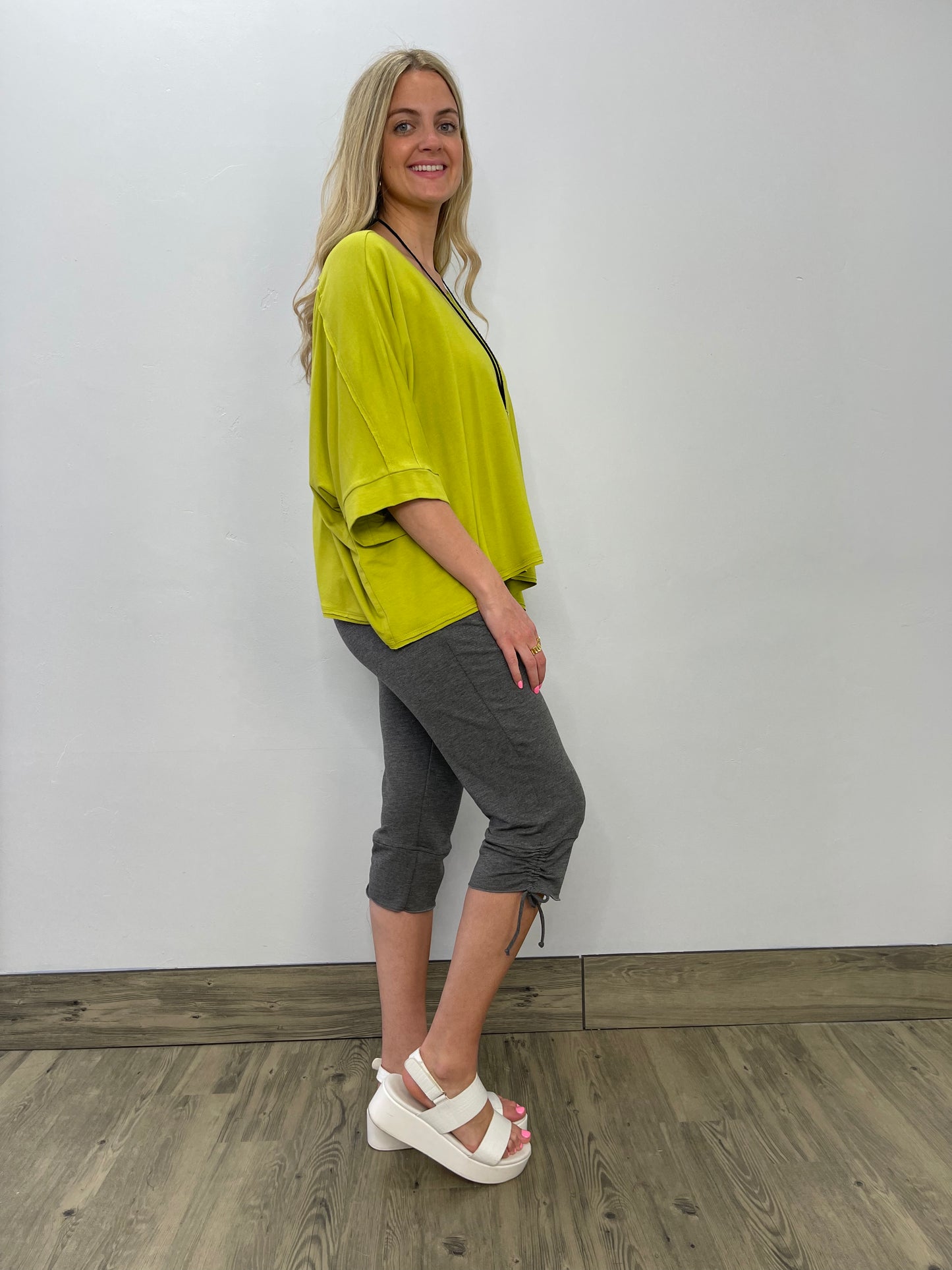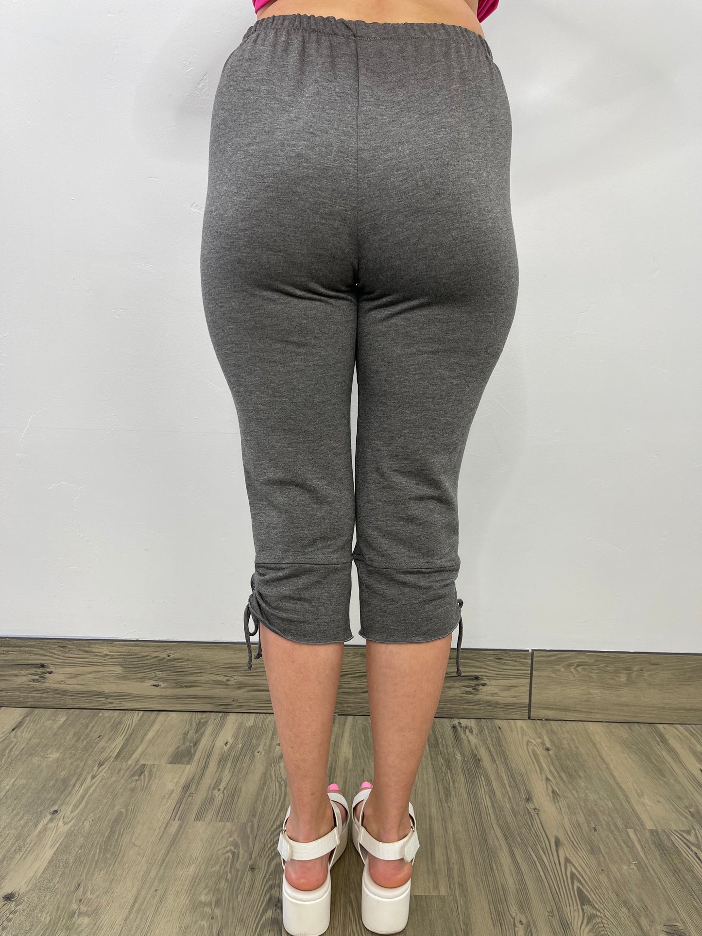 Be cool and comfortable this summer in these super soft Charcoal Gaucho Capris with Ties! Constructed with bamboo fabric and featuring an elastic waistband and ties at the hem, they'll keep you looking stylish while allowing you to move freely. So why wait? Get ready to rock your summer look!