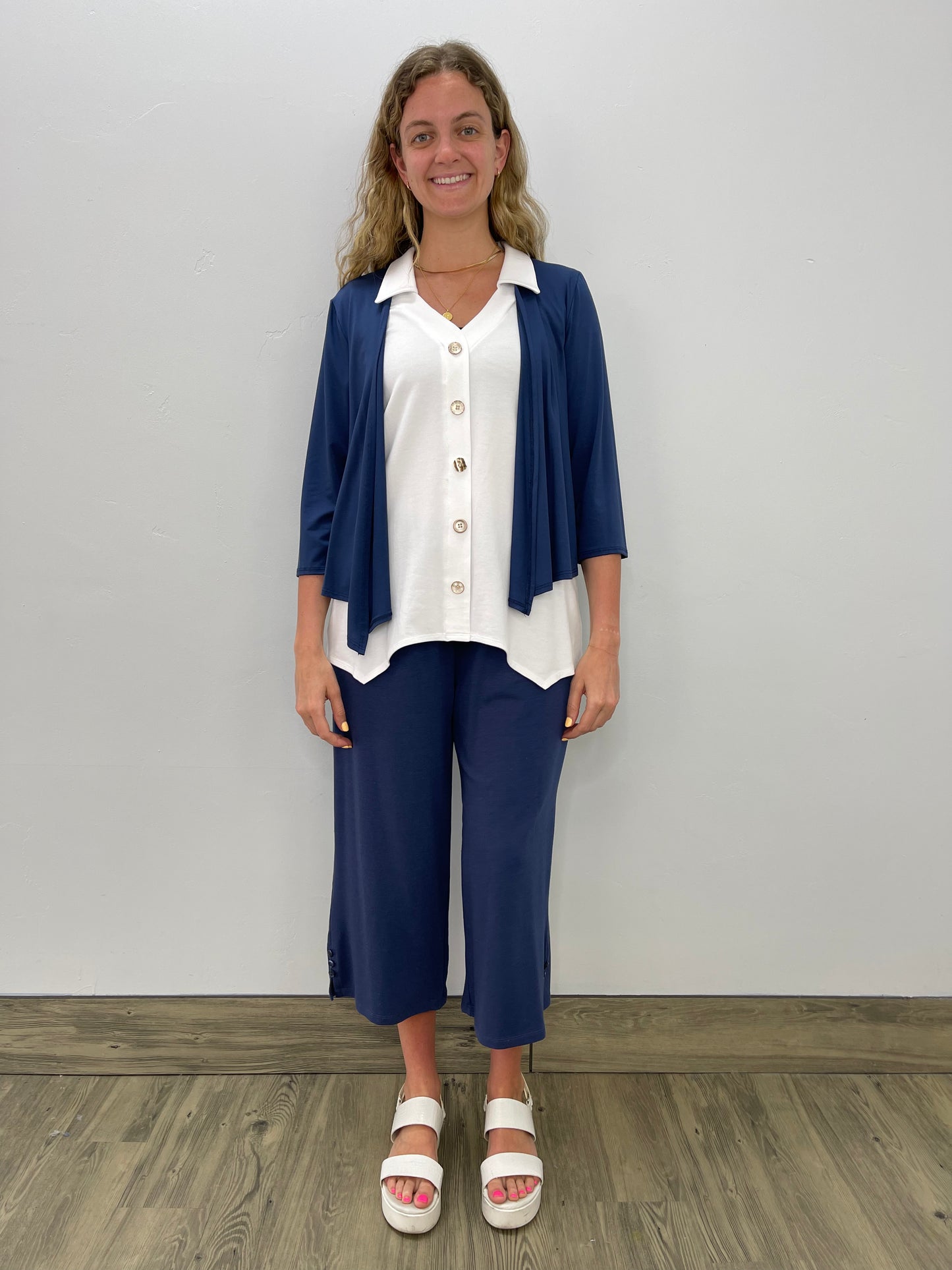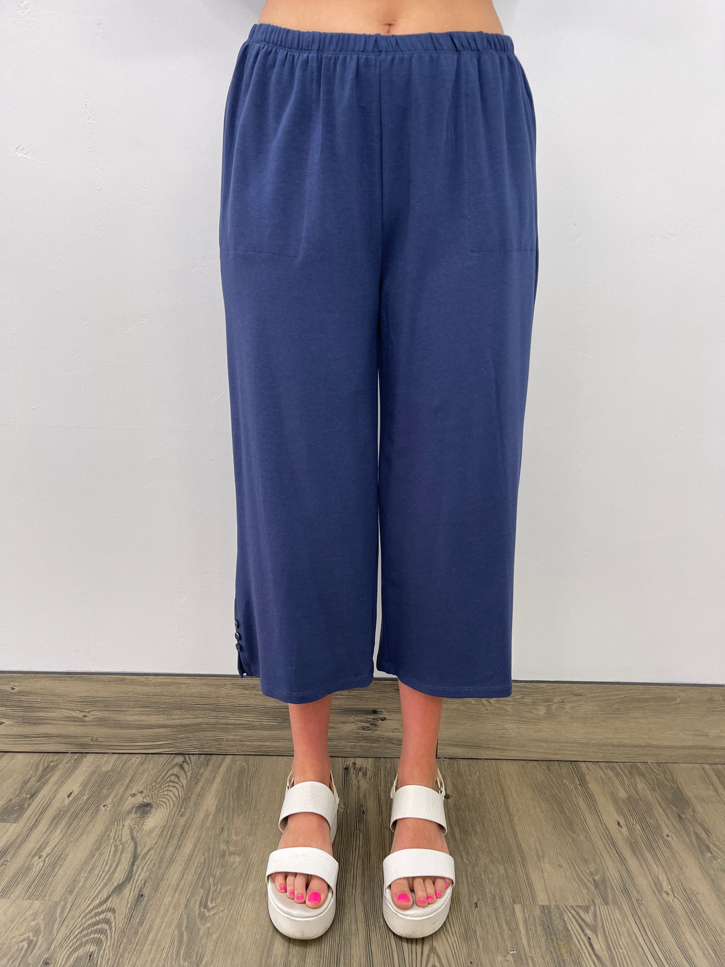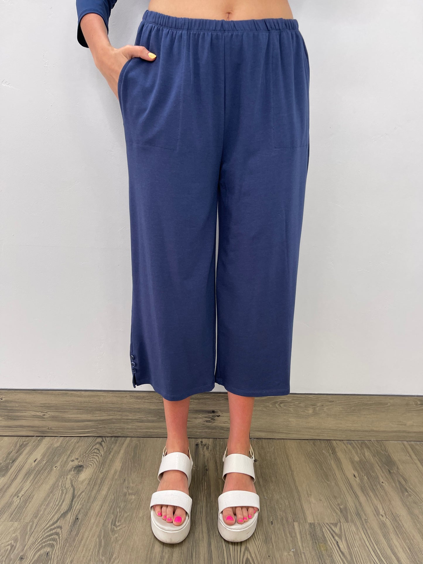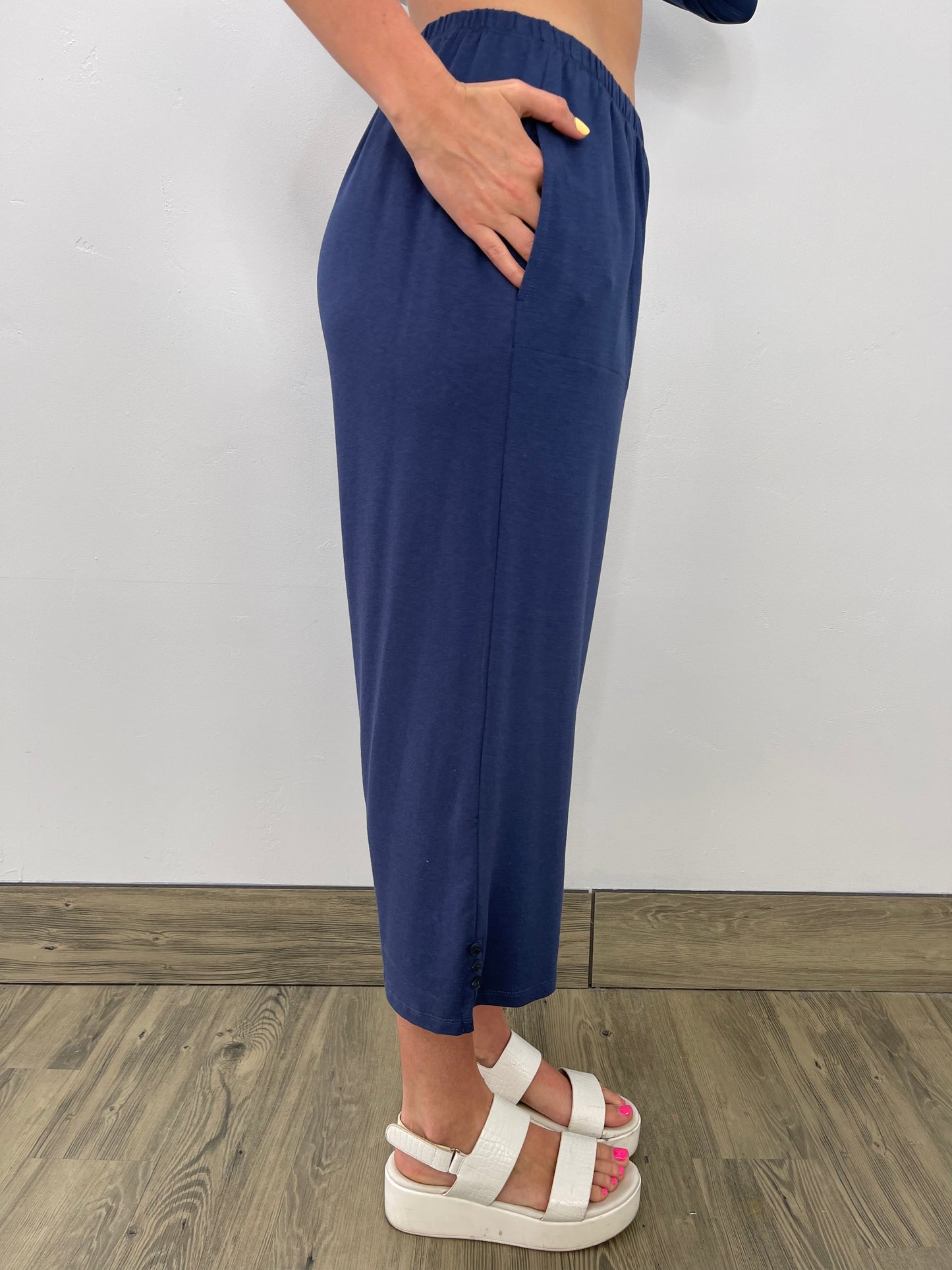 Experience ultimate comfort and style with our Denim Bamboo Terry Capri. Its elastic waist band and button detailing on the bottom add a unique touch while providing a comfortable and lightweight fit. Perfect for any activity, these capris will keep you feeling cool and confident all day long.