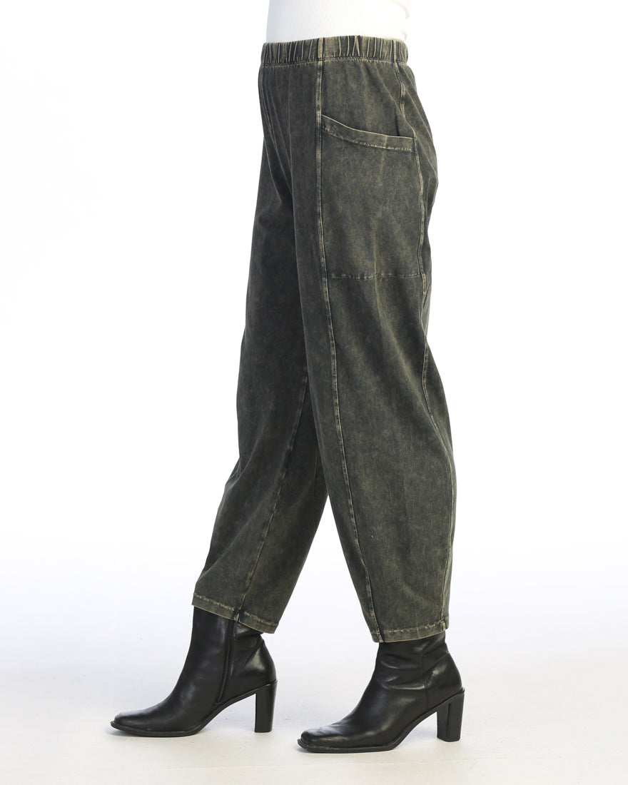 Forest Green Mineral Washed Cotton Lantern Pants With Side Patch Pocket