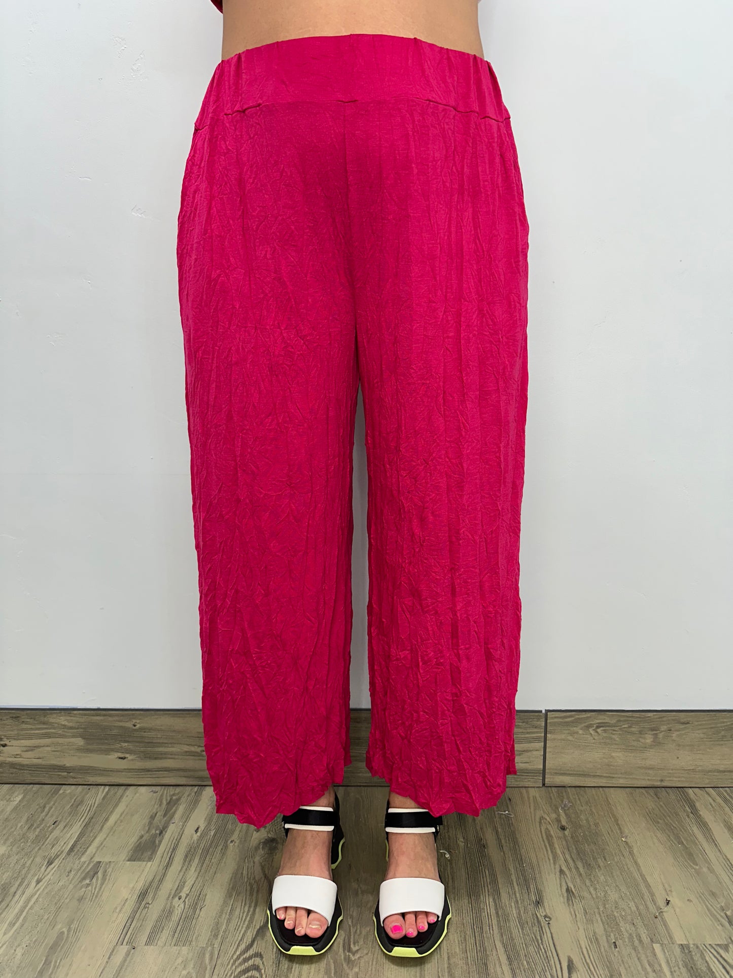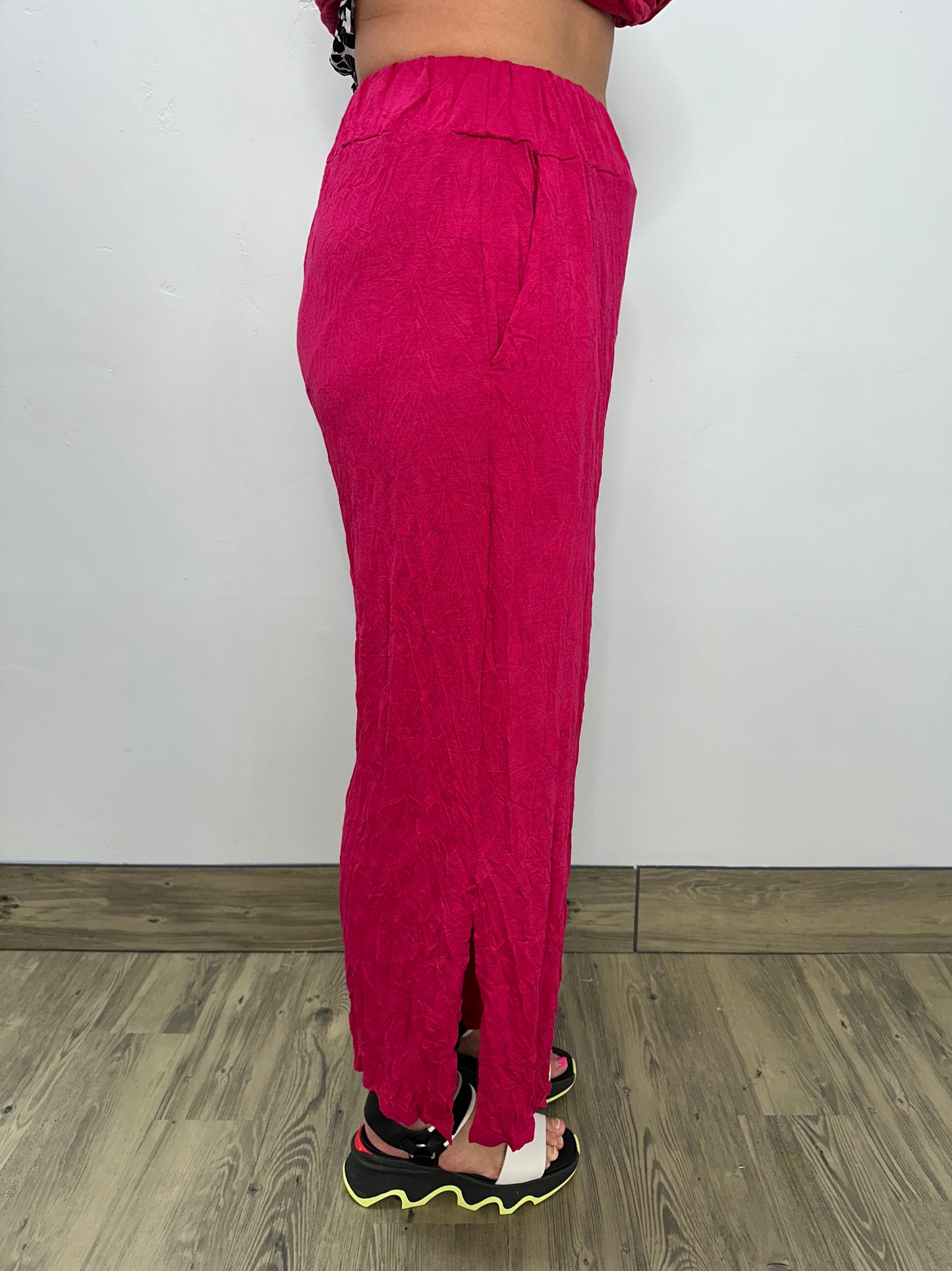 Fuchsia Pink Crinkle Jersey Full Length Pant