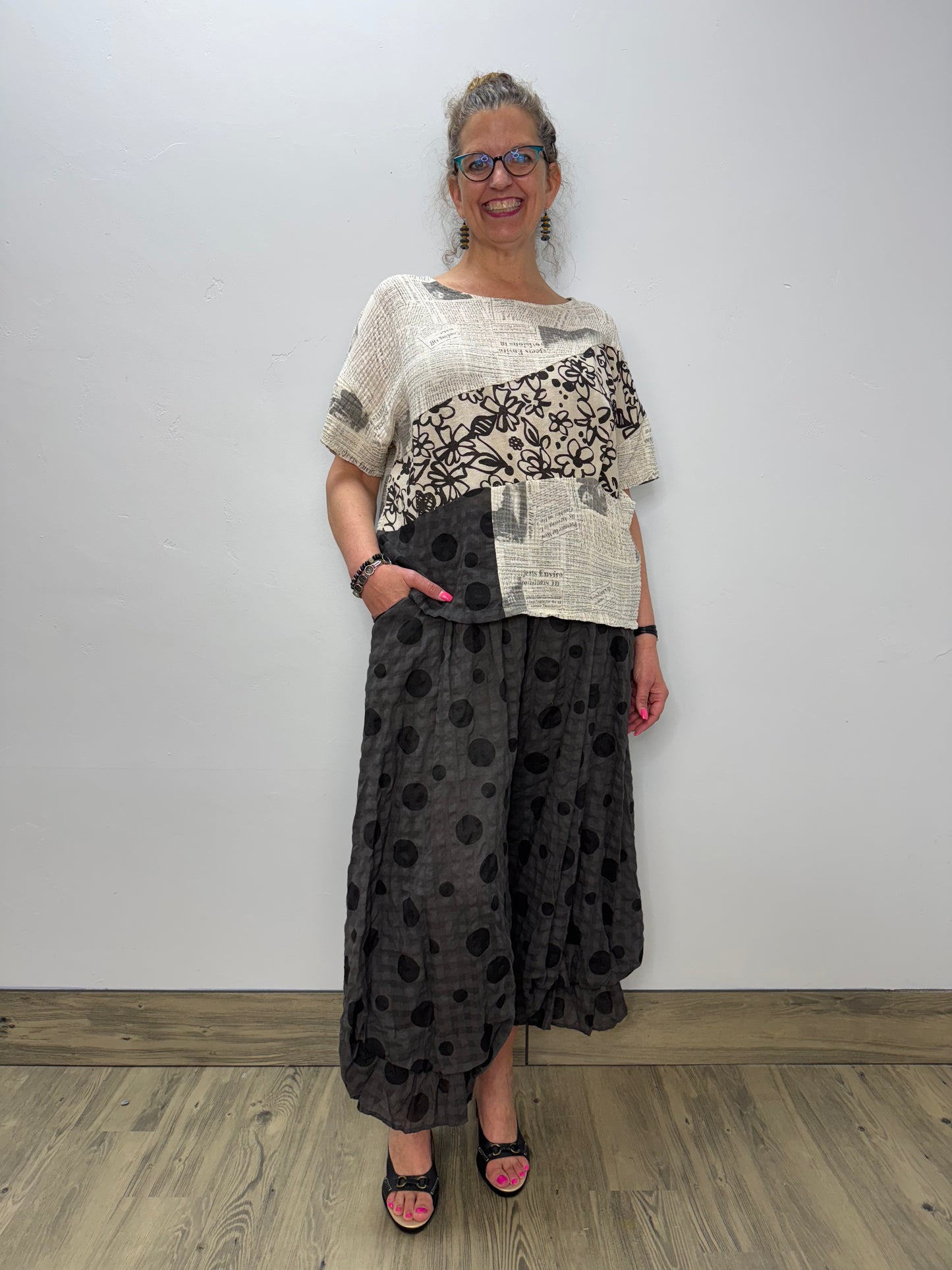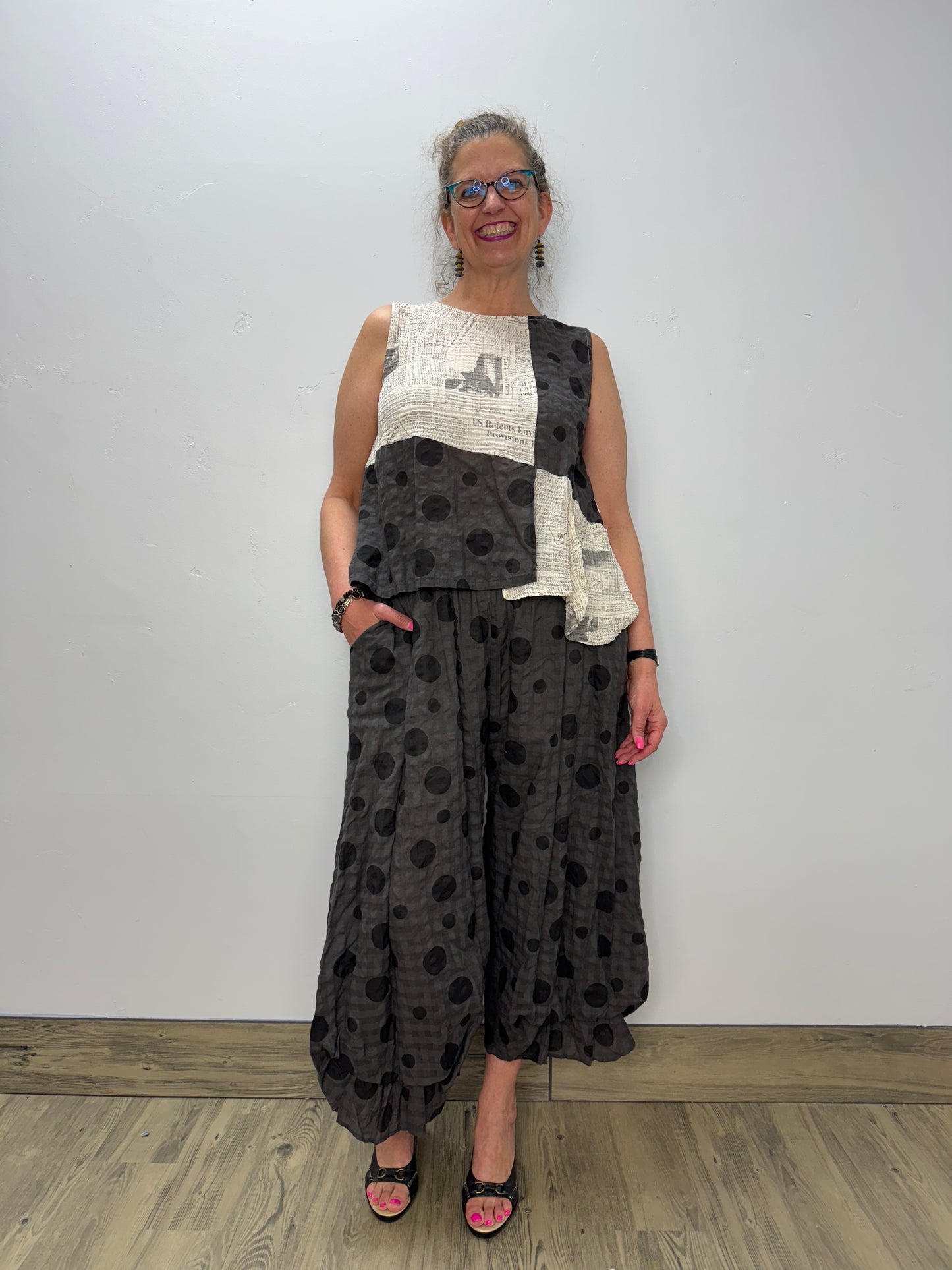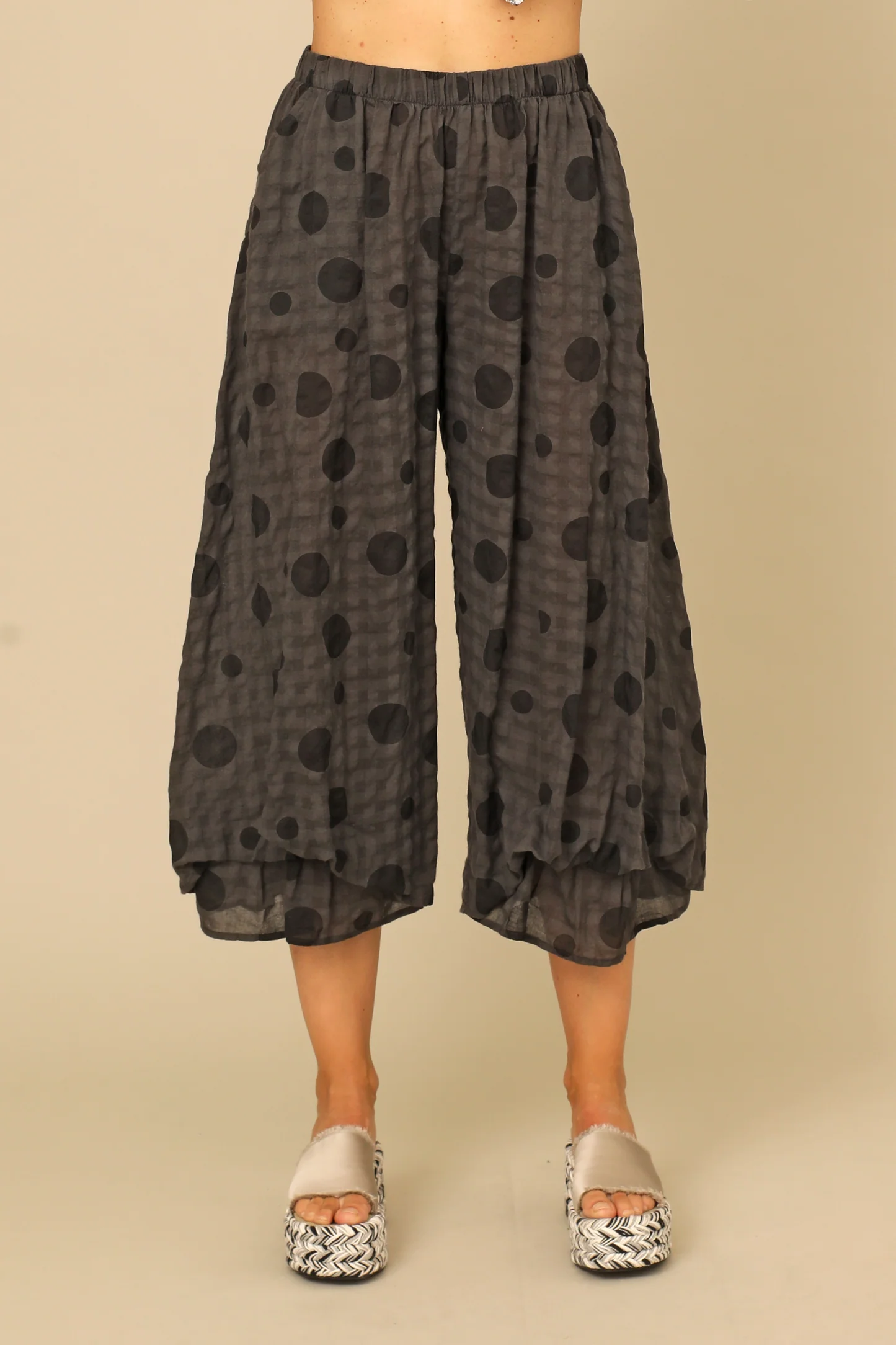 Graphite Polka Dot Pattern Pleated Crop Pant